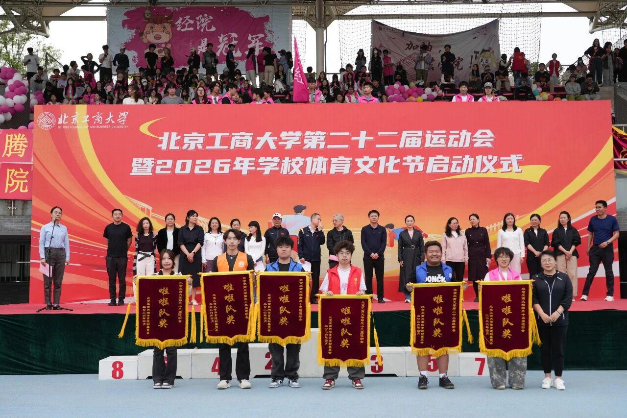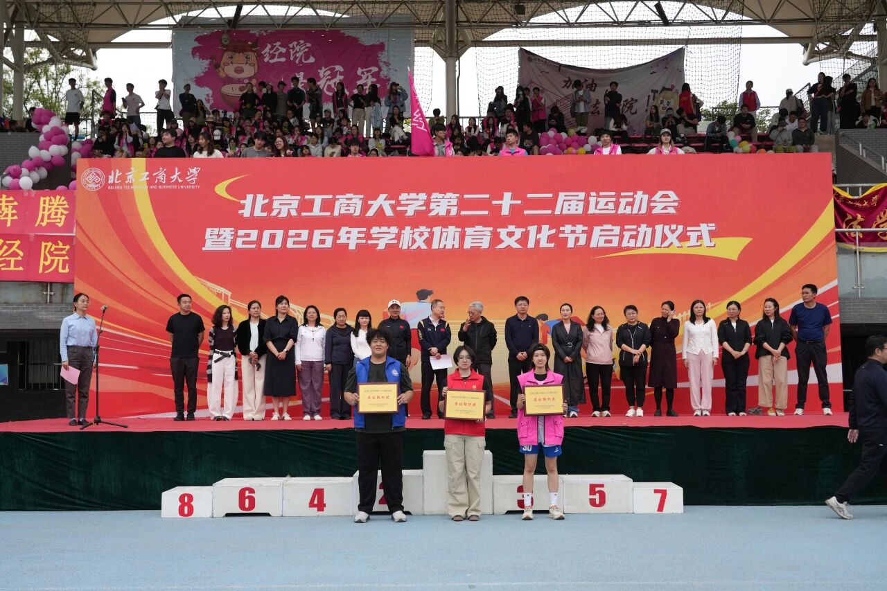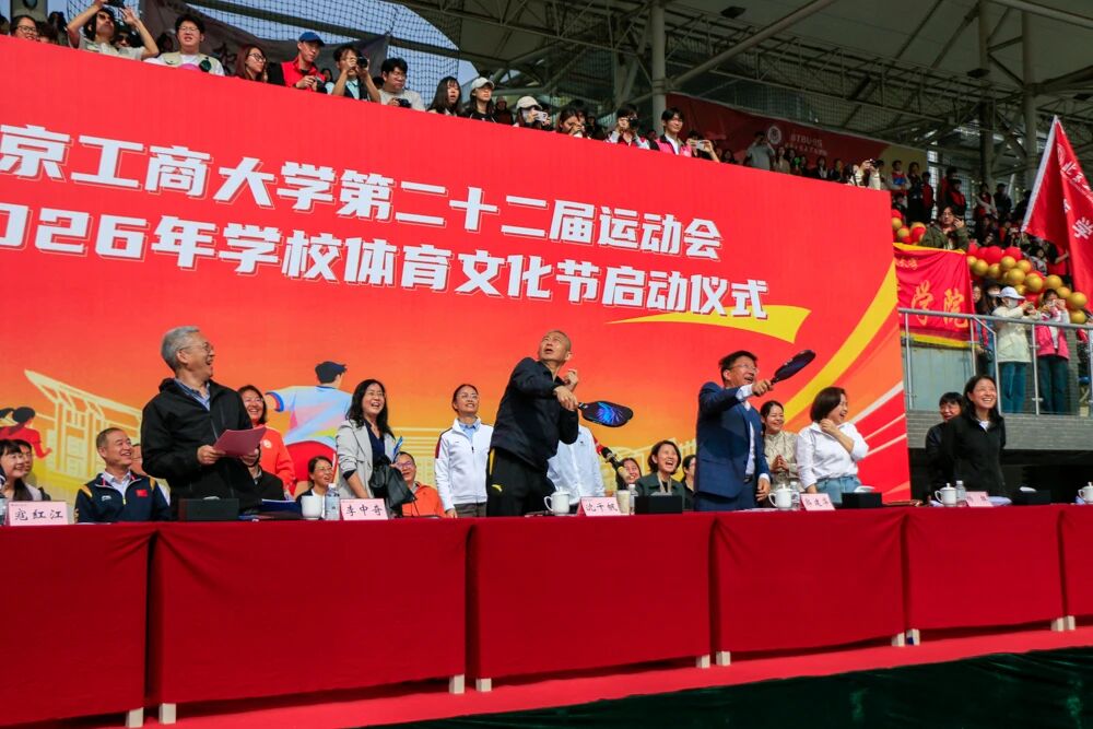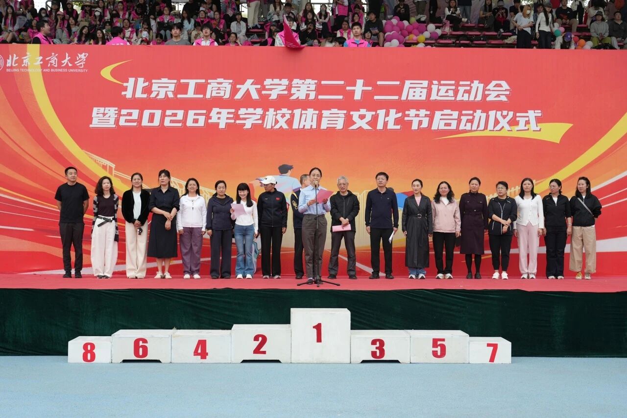 党委书记沈千帆宣布北京工商大学第二十二届运动会暨2026年校园体育文化节开幕。