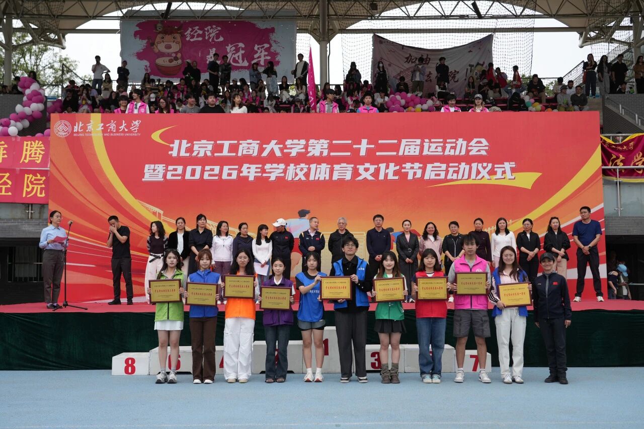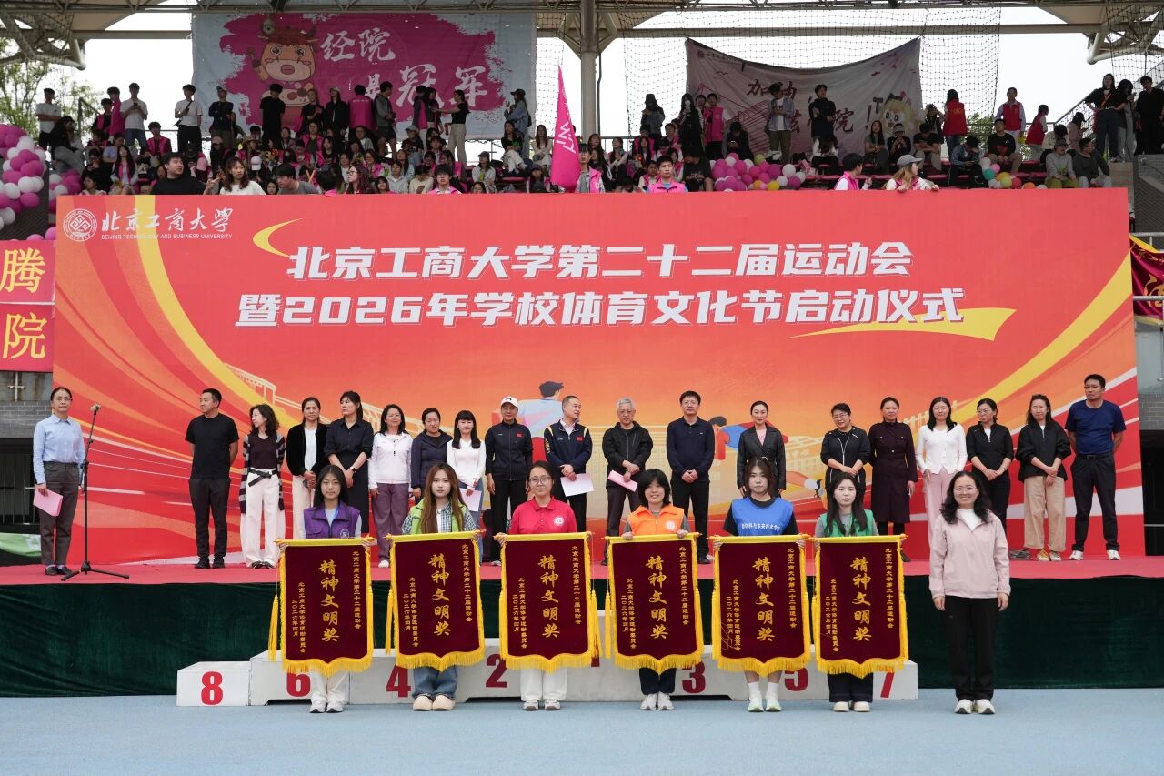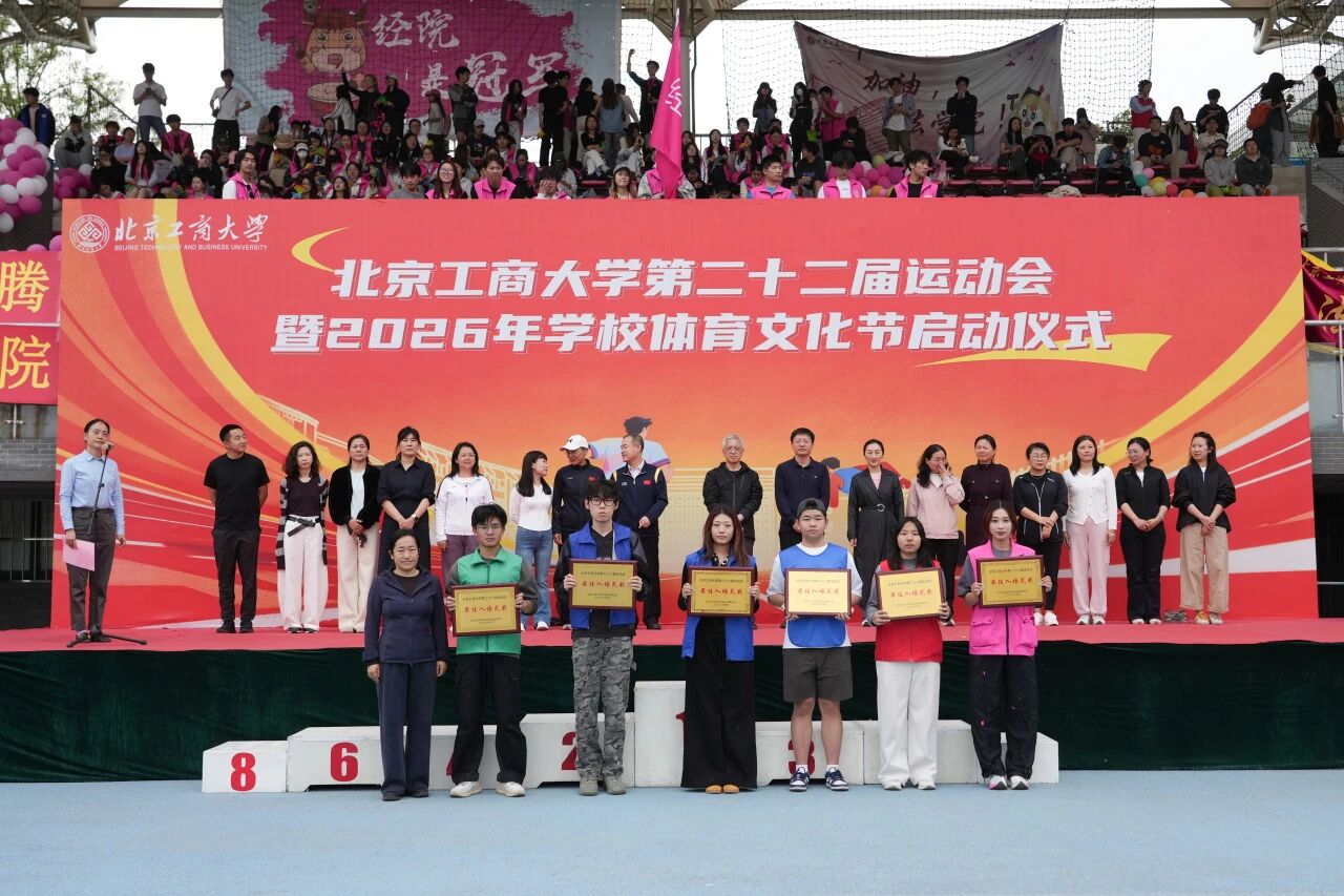 党委书记沈千帆宣布北京工商大学第二十二届运动会暨2026年校园体育文化节开幕。