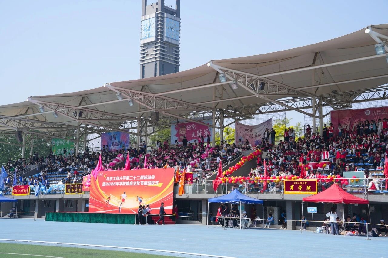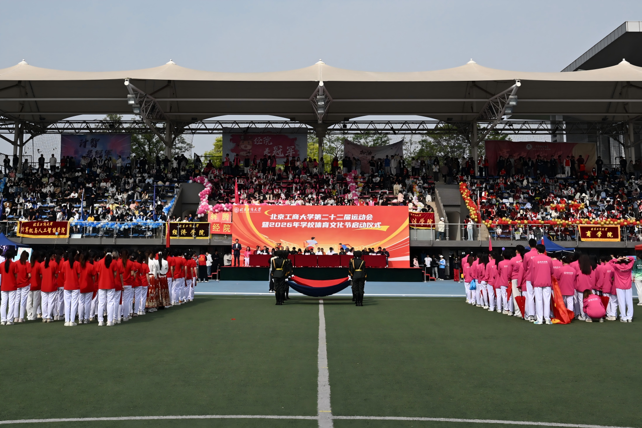 4月24日上午,学校在良乡主校区举行第二十二届运动会开幕式暨2026年校园体育文化节启动仪式。学校领导沈千帆、郭建华、李中奇、杨红、寇红江、刘艳楠出席开幕式,学校体育运动委员会委员、各学院和相关职能部门负责人与4000余师生相聚运动场,共同见证这场属于北工商人的体育盛会。党委副书记李中奇主持开幕式。