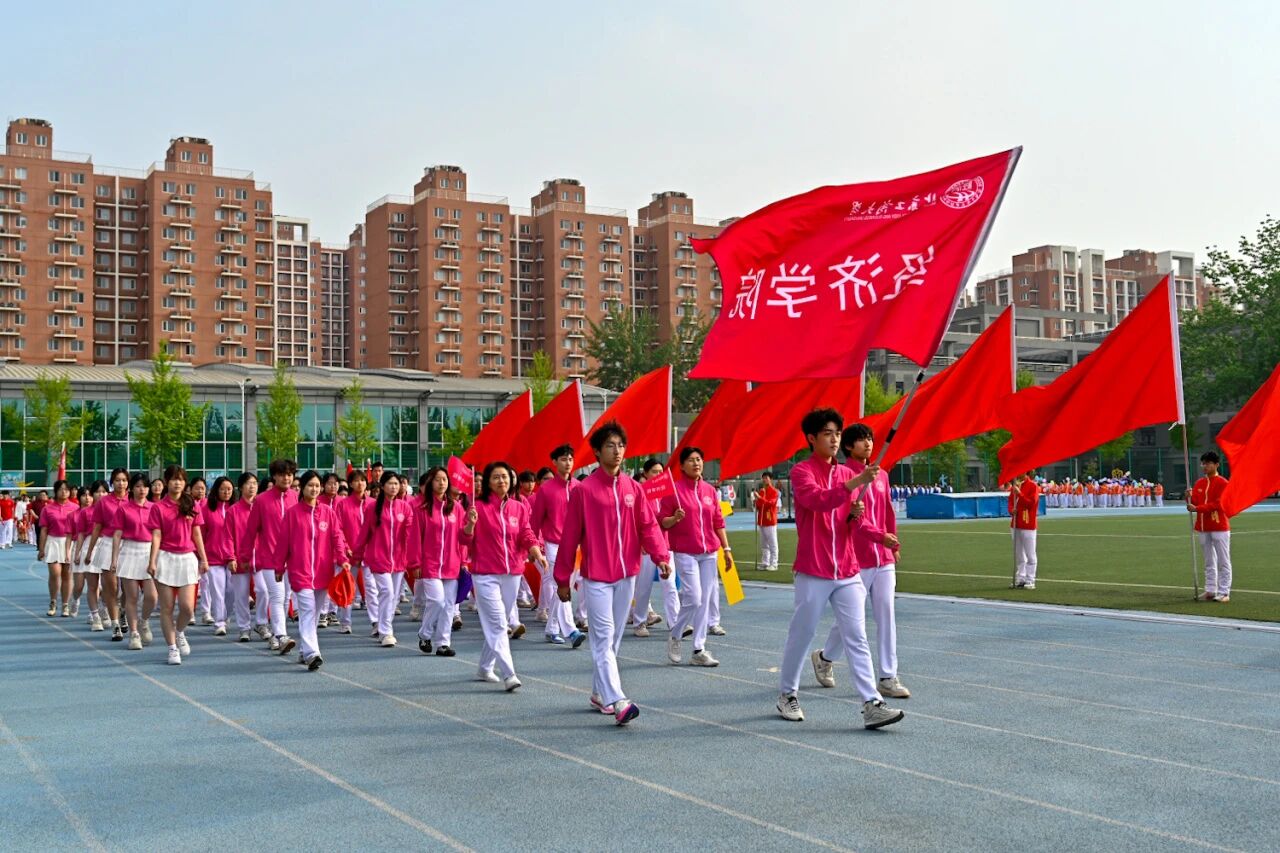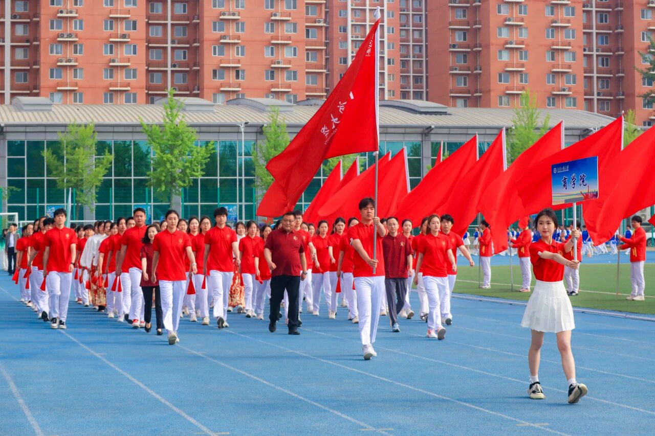 商学院方阵融合商科思维与体育拼搏精神,秉持知行合一理念,在赛场展现商道纵横、体魄为基的青春风采。