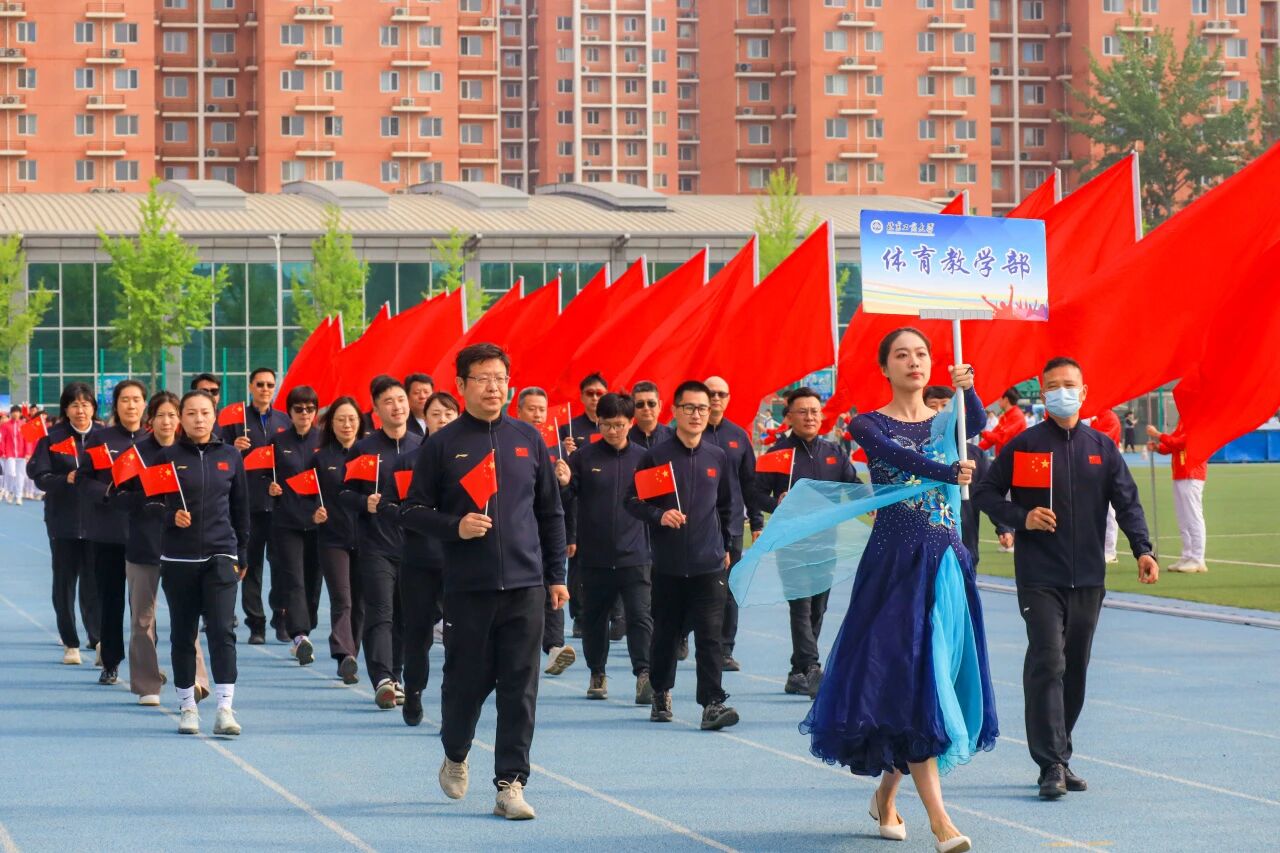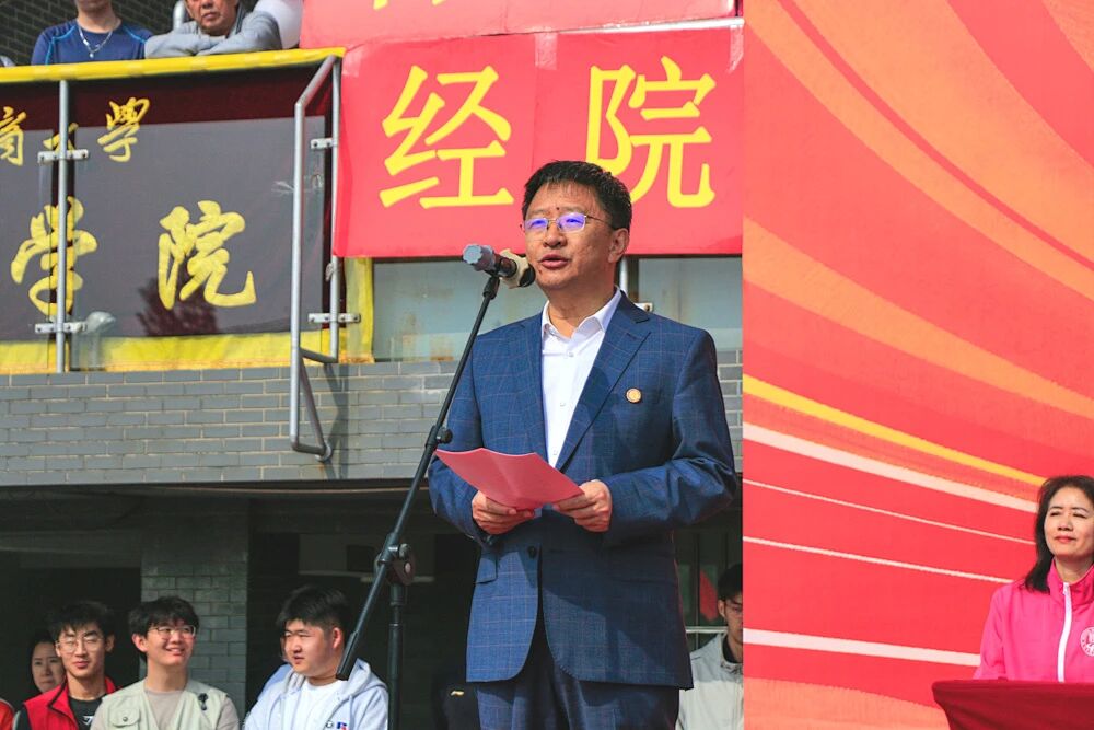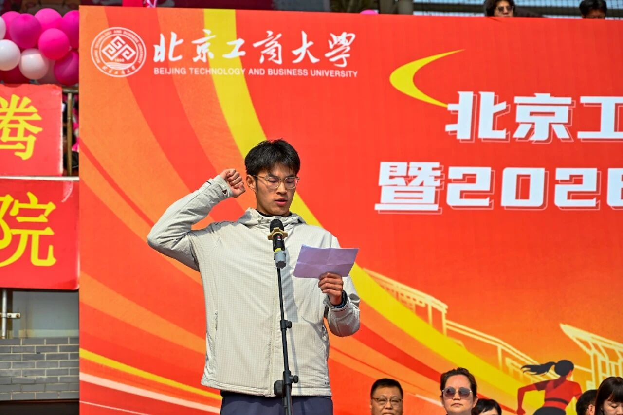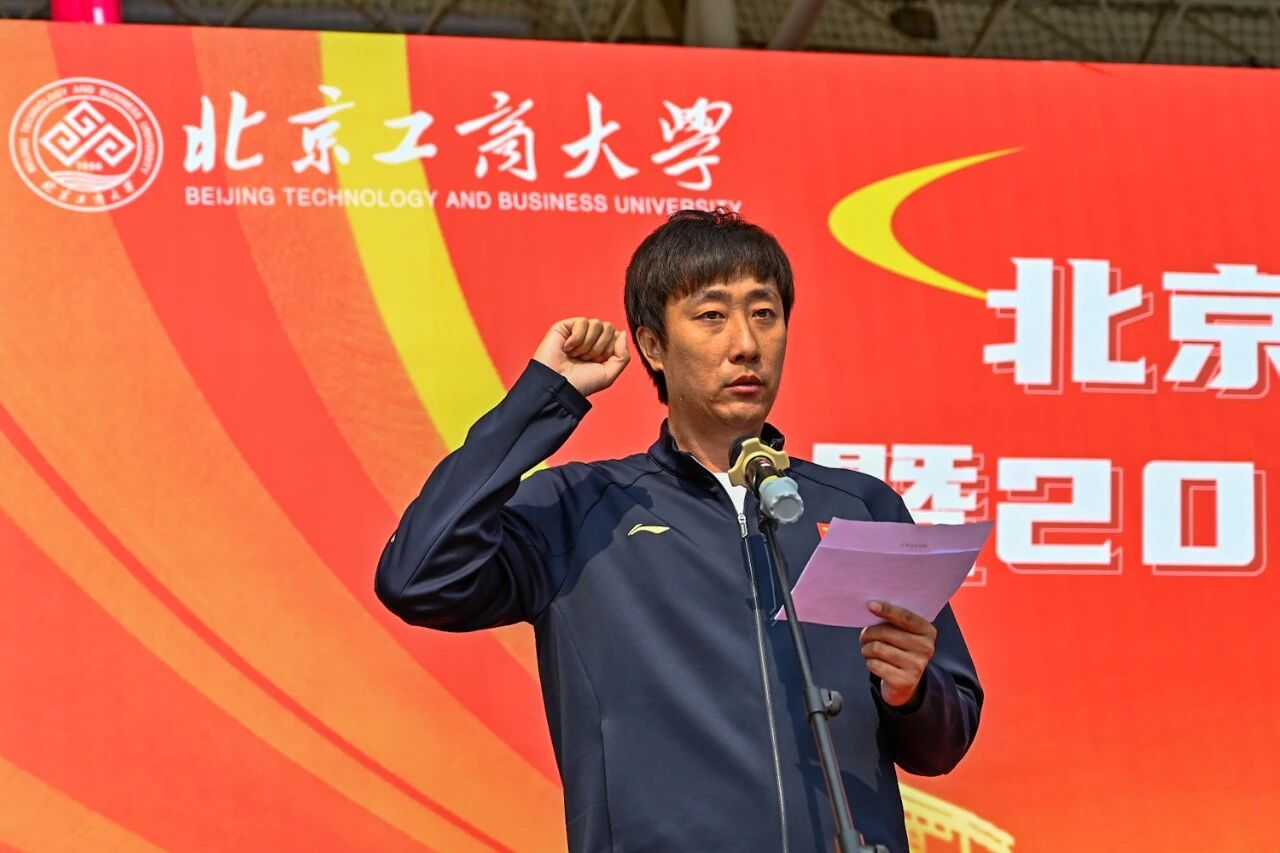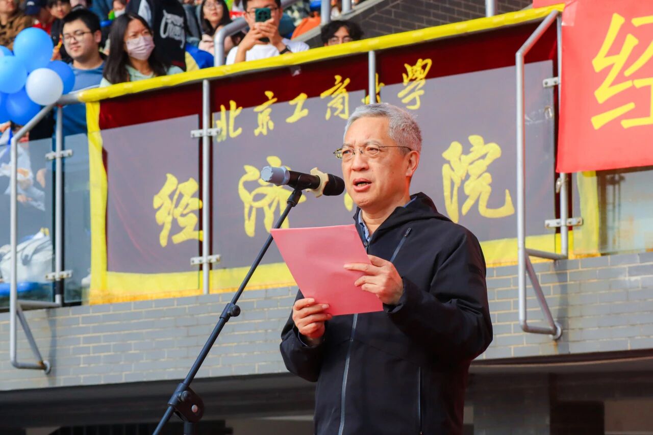 党委副书记、校长郭建华代表学校向运动会召开表示热烈祝贺,向全体筹备人员、运动员、教练员、裁判员致以诚挚感谢。他指出,健康是教育的根基与生命成长的第一基石,是贯穿学生成长全程的必修课。体育不仅能增强体质,更能磨炼意志、修炼品格,帮助学生在竞技中坚守规则、在合作中学会包容、在输赢中提升格局,为人生发展筑牢根基。他充分肯定学校体育工作取得的优异成绩:2025年学校斩获首都高等学校阳光杯体育联赛优胜奖,校运动队共获国家级奖项9项、国家级冠军5项、省部级冠军133人次,男子足球、体质测试赛、羽毛球、越野队等多个项目实现历史性突破,展现了北工商师生昂扬向上的精神风貌。他强调,青年强则国家强,青年之强在于学识、能力,更在于强健体魄。希望全体同学树立 “健康第一” 理念,当好自身健康第一责任人,坚持科学运动、养成良好习惯,做到 “文明其精神,野蛮其体魄”,在体育锻炼中享受乐趣、健全人格、锤炼意志,努力成长为担当民族复兴大任的时代新人。最后,郭建华预祝本届运动会圆满成功,祝愿全体运动员超越自我、收获成长。