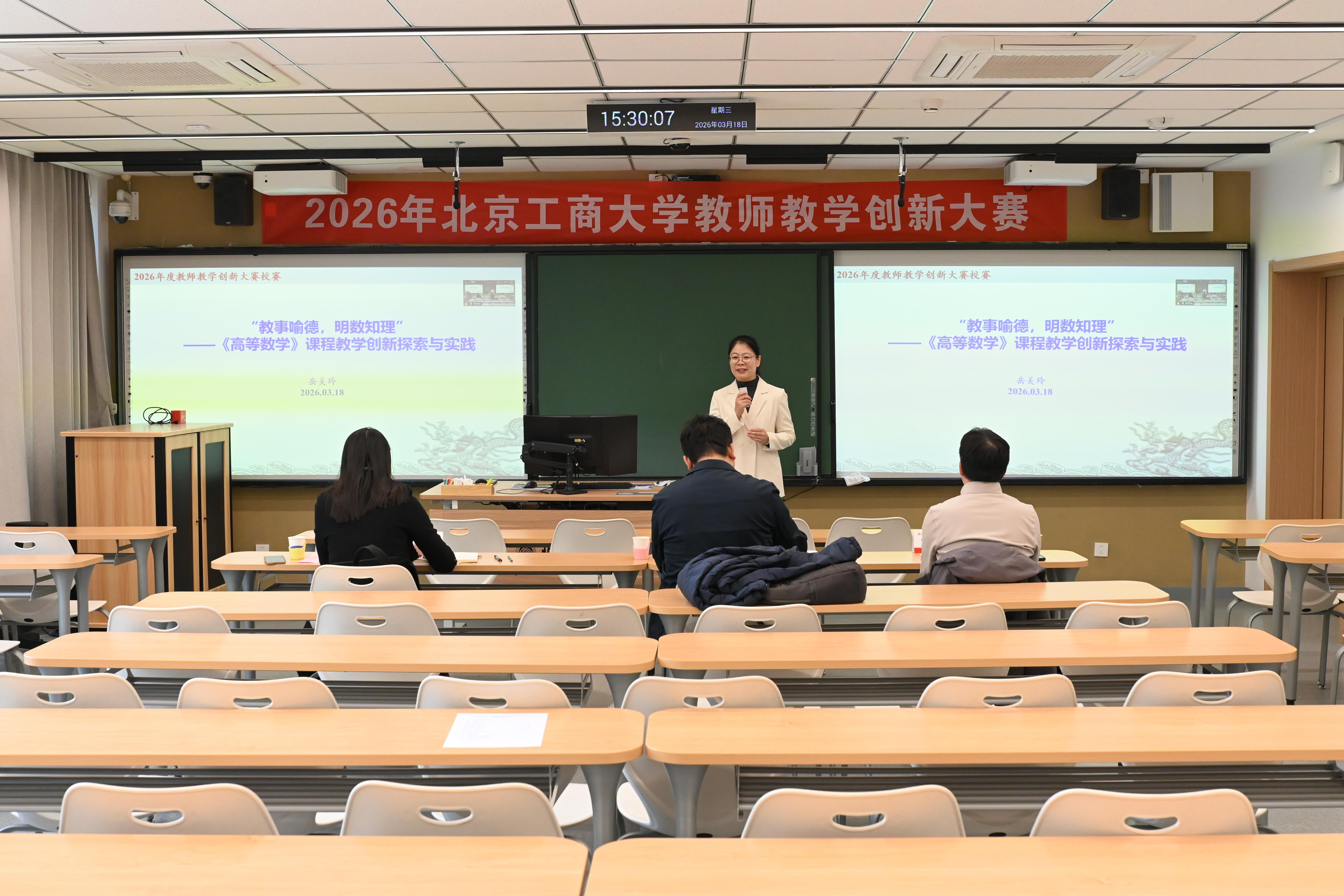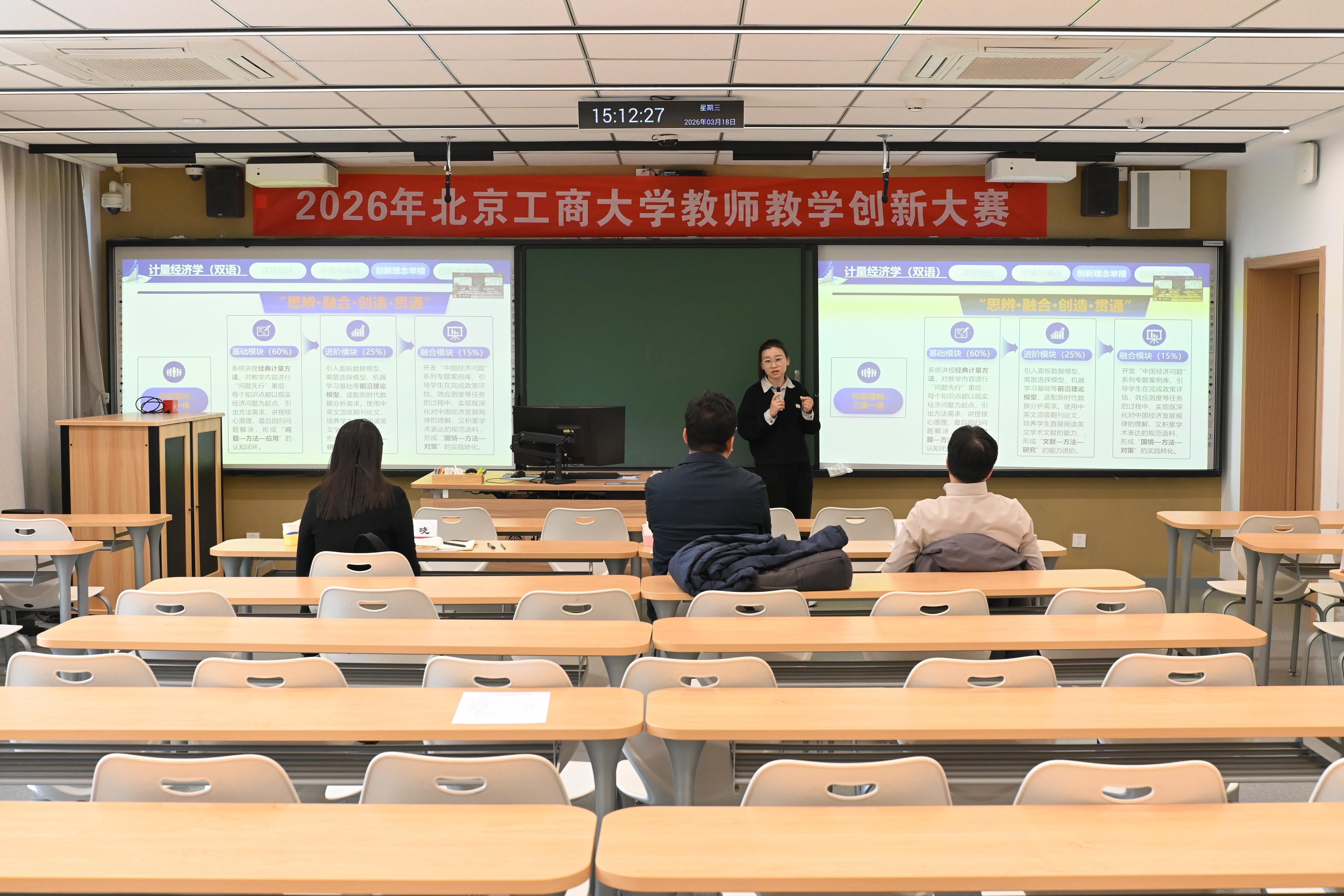 为深入贯彻落实立德树人根本任务,激活教师教学创新内生动力,持续提升课堂教学质量与人才培养水平,搭建教师教学经验交流、教学成果展示的优质平台,近日,2026年北京工商大学教师教学创新大赛现场赛在良乡主校区举办。副校长刘艳楠出席开幕式并致辞,教务处处长王鲁娜主持比赛,大赛同步通过腾讯会议开启线上直播,实现线上线下同频参与。
