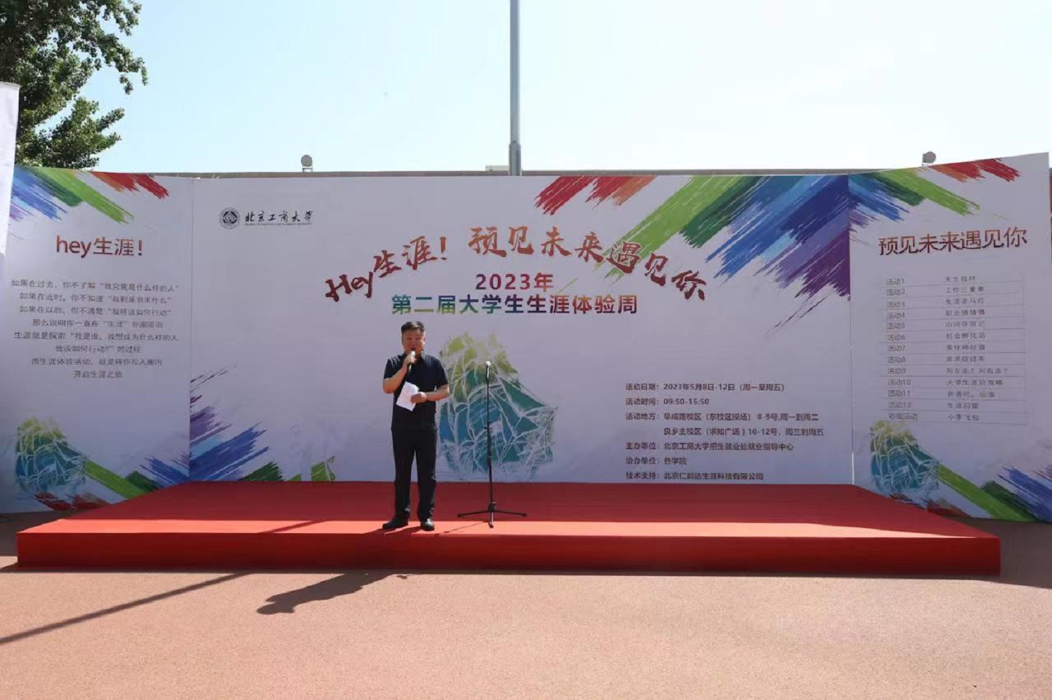 为深入贯彻党中央、国务院关于促进高校毕业生就业工作的决策部署,加强大学生科学就业观的塑造和引导,强化同学们生涯发展与职业规划意识,5月8至12日,我校在阜成路校区和良乡主校区举办了第二届“预见未来遇见你”大学生生涯体验周活动。