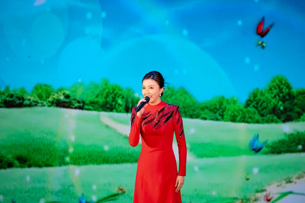 当经典旋律响起,全场共鸣。女声独唱《映山红》《红太阳照边疆》将经典红歌与民族歌曲巧妙结合。歌唱家卞英花醇厚的嗓音饱含深情、激昂嘹亮,唱出了峥嵘岁月里的红色信仰,唤起了现场师生强烈的家国情怀与民族自豪感。