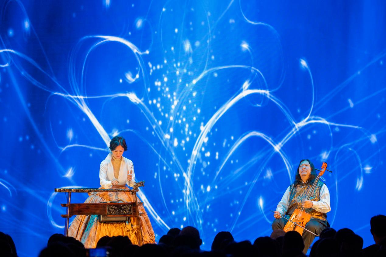 跨越山海,琴瑟和鸣。独弦琴与马头琴合奏《爱无疆》惊艳全场。京族独弦琴温婉悠扬,蒙古族马头琴雄浑深沉,两种一南一北、极具民族特色的乐器跨界交融碰撞,旋律时而轻柔绵长,时而激昂壮阔,深情诉说着各民族之间血脉相连、守望相助的深厚情谊。