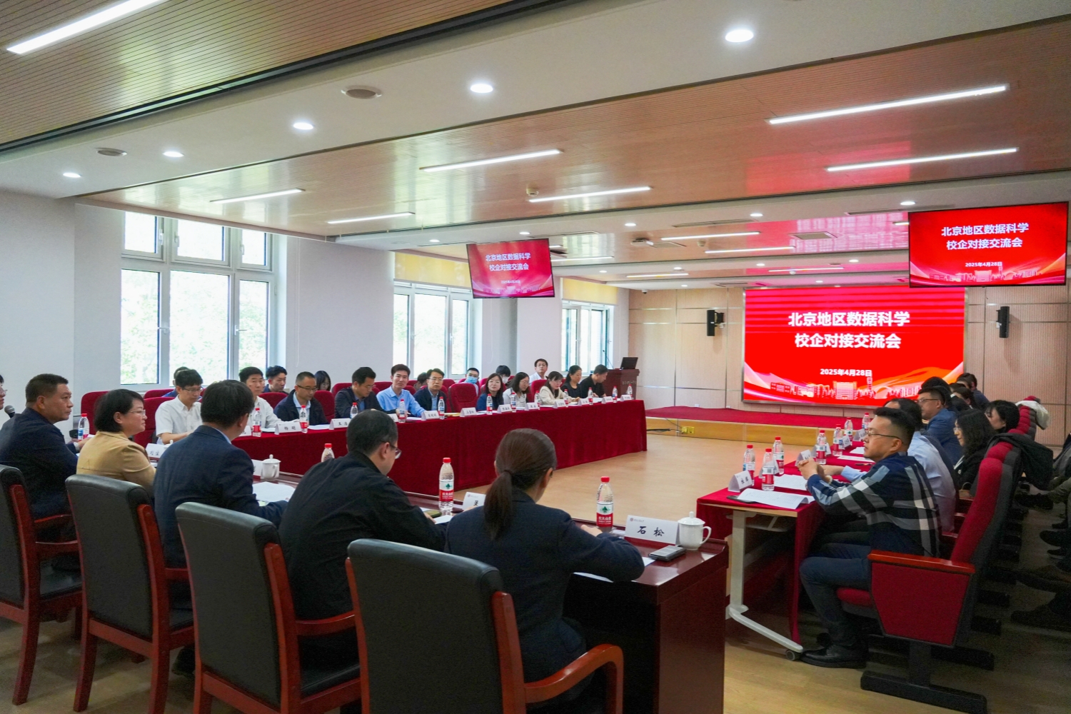 4月28日下午,由中国商业统计学会、北京工商大学联合主办,朝阳区人力资源和社会保障局、房山区人力资源和社会保障局、北京工商大学数学与统计学院、北京回响网数信息网络有限公司协办的“北京地区数据科学校企对接交流会”在北京工商大学良乡主校区益普索·立丰楼举行。北京工商大学党委副书记、校长郭建华,中国商业统计学会秘书长江懿、副秘书长赵曦辉,朝阳区人力资源和社会保障局副局长孟喆,房山区人力资源和社会保障局副局长刘佳,商务部国际贸易经济合作研究院副研究员戴明锋出席会议,北京工商大学招生就业处处长石松,朝阳区、房山区人力资源和社会保障局各科室负责人,亿欧、零点、凯度等10余家数据科学相关企业负责人和北京理工大学、北京化工大学、北京交通大学等10家兄弟高校数据科学相关学院领导参加本次活动。交流会由北京工商大学数学与统计学院党委书记周艳杰主持。