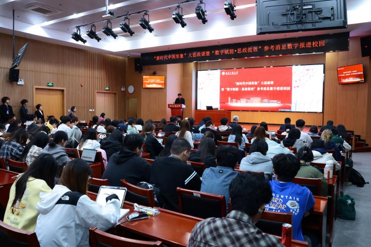 4月14日,党委学生工作部联合《参考消息》报社在阜成路校区综合楼三层报告厅举办“新时代中国形象”大思政课暨“数字赋能·思政提效”参考消息数字报进校园活动。教育部思政司宣教处三级调研员王磊,《参考消息》报党委常委、副总编辑何晏,时政编辑室主任韩炎,出版发行部副主任张虓、赵连冲,我校党委副书记李中奇,党委学生工作部部长郑光、副部长党浩以及1600余名师生代表参与此次活动。活动由郑光主持。