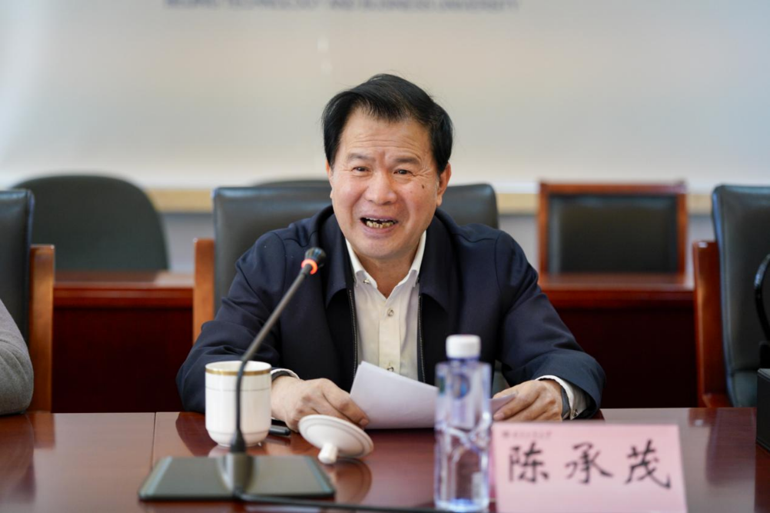 3月6日,78级商经校友、福州海峡两岸和平统一促进会会长陈承茂一行回到母校。学校党委书记沈千帆,党委副书记、校长郭建华,党委常委、副校长毛新述在阜成路校区会见了陈承茂一行并进行座谈交流。座谈会由毛新述主持。
