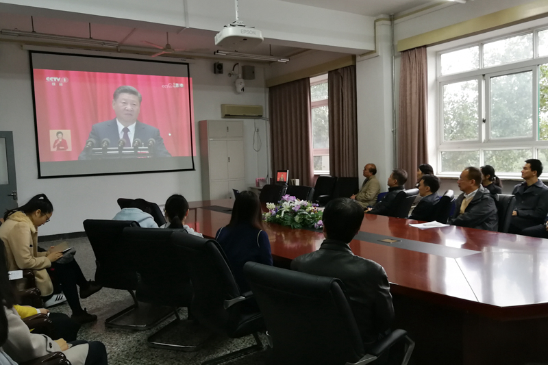 大家一致认为中国共产党第十九次全国代表大会,是在全面建成小康社会决胜阶段、中国特色社会主义进入新时代的关键时期召开的一次十分重要的大会。总书记在报告中提出了一系列新判断、新提法、新概念、新要求、新部署,对今后的各项工作做了全面部署,高屋建瓴、内涵丰富、思想深邃、重点突出。大家表示,要将学习习近平总书记报告、贯彻落实十九大精神与各自的工作、学习实际结合起来,不忘初心,坚定信念,锐意进取,埋头苦干,为中国特色社会主义事业建设和学校的发展做出自己应有的贡献。