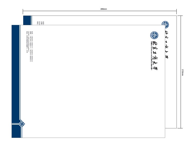 为了确保北京工商大学视觉识别形象传播的统一性,本页规定学校信纸的使用范围,在实际应用中严禁对标识与名称的组合方式、标准色以及设计版式做任何改动。