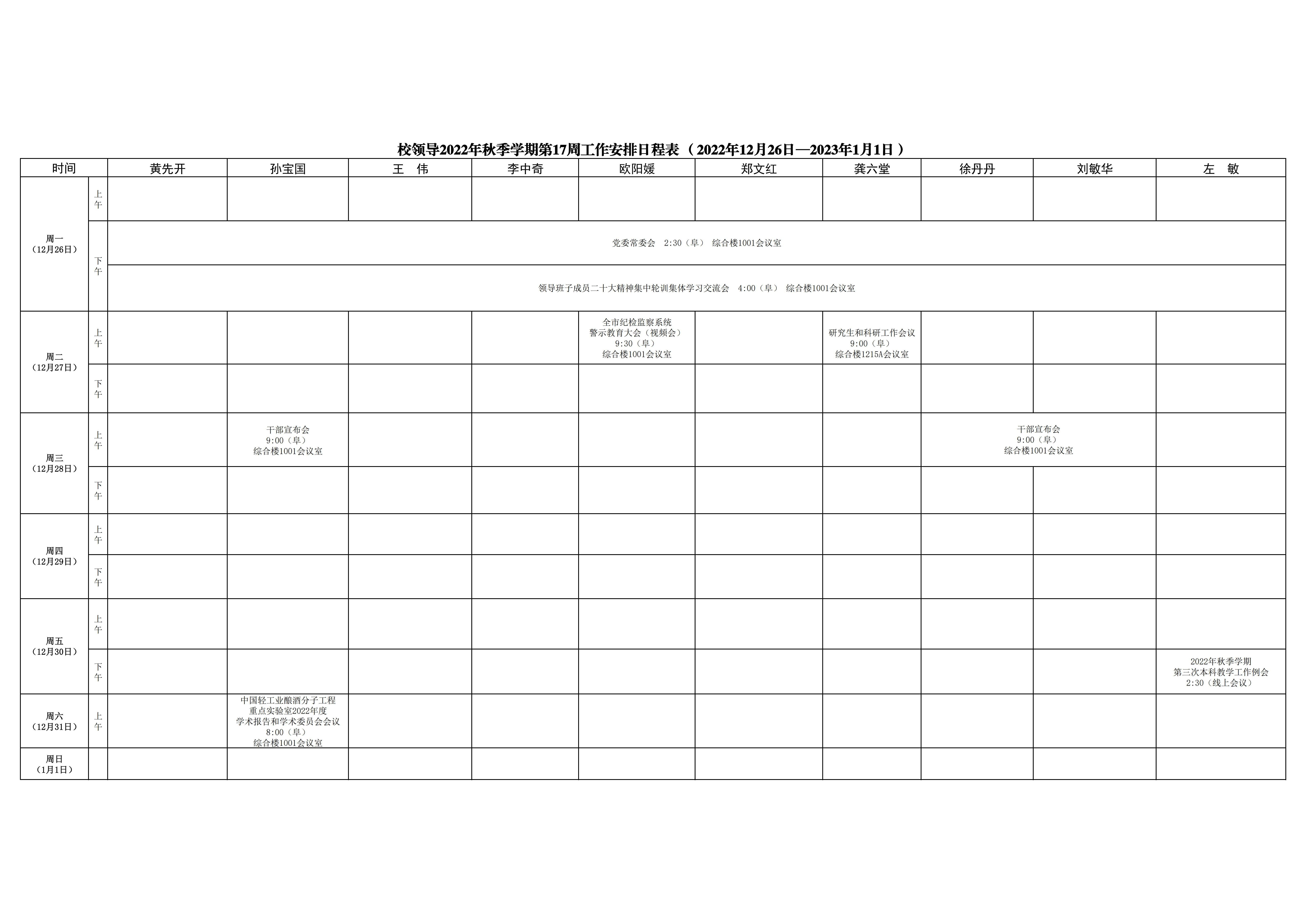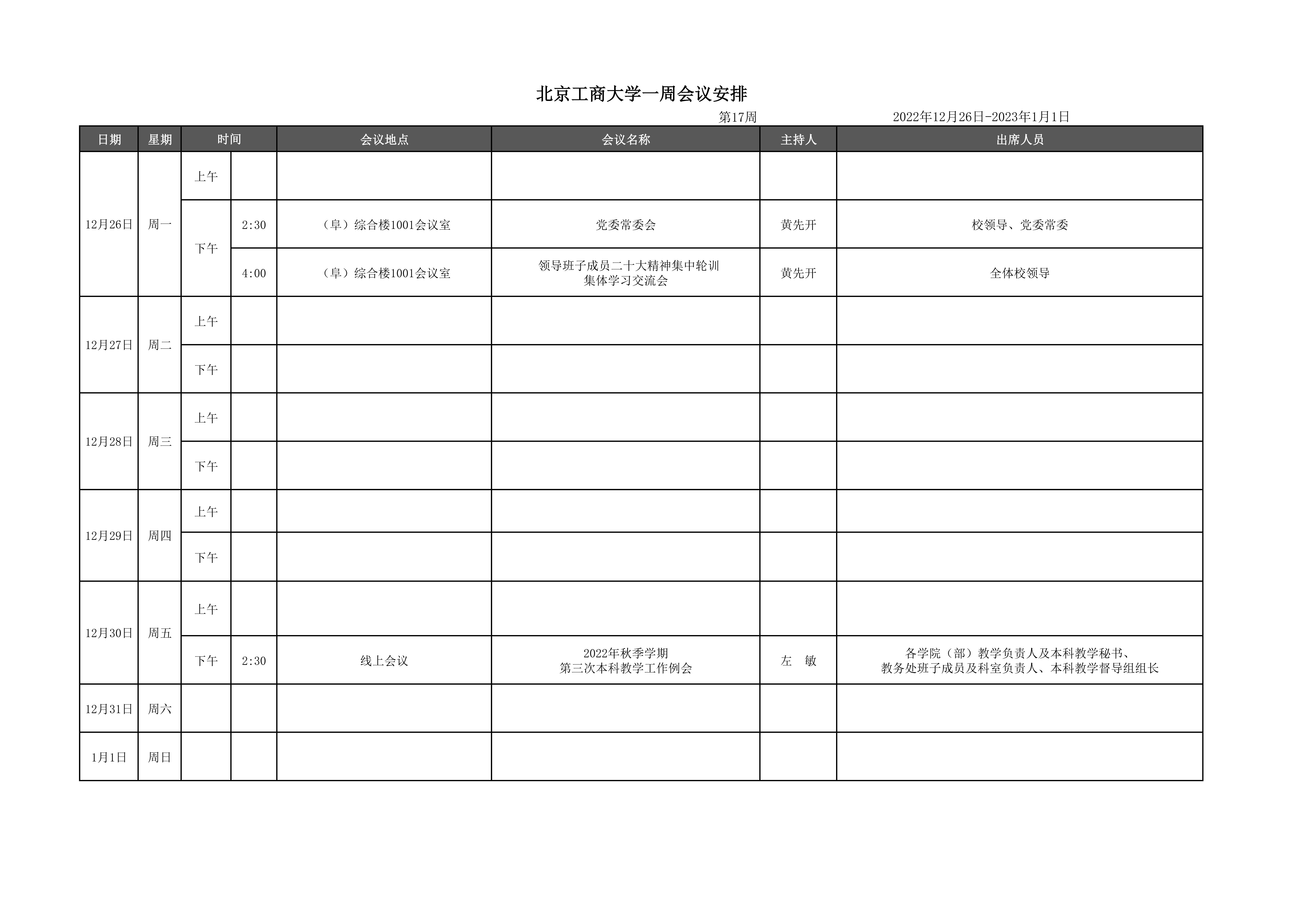 第17周会议安排