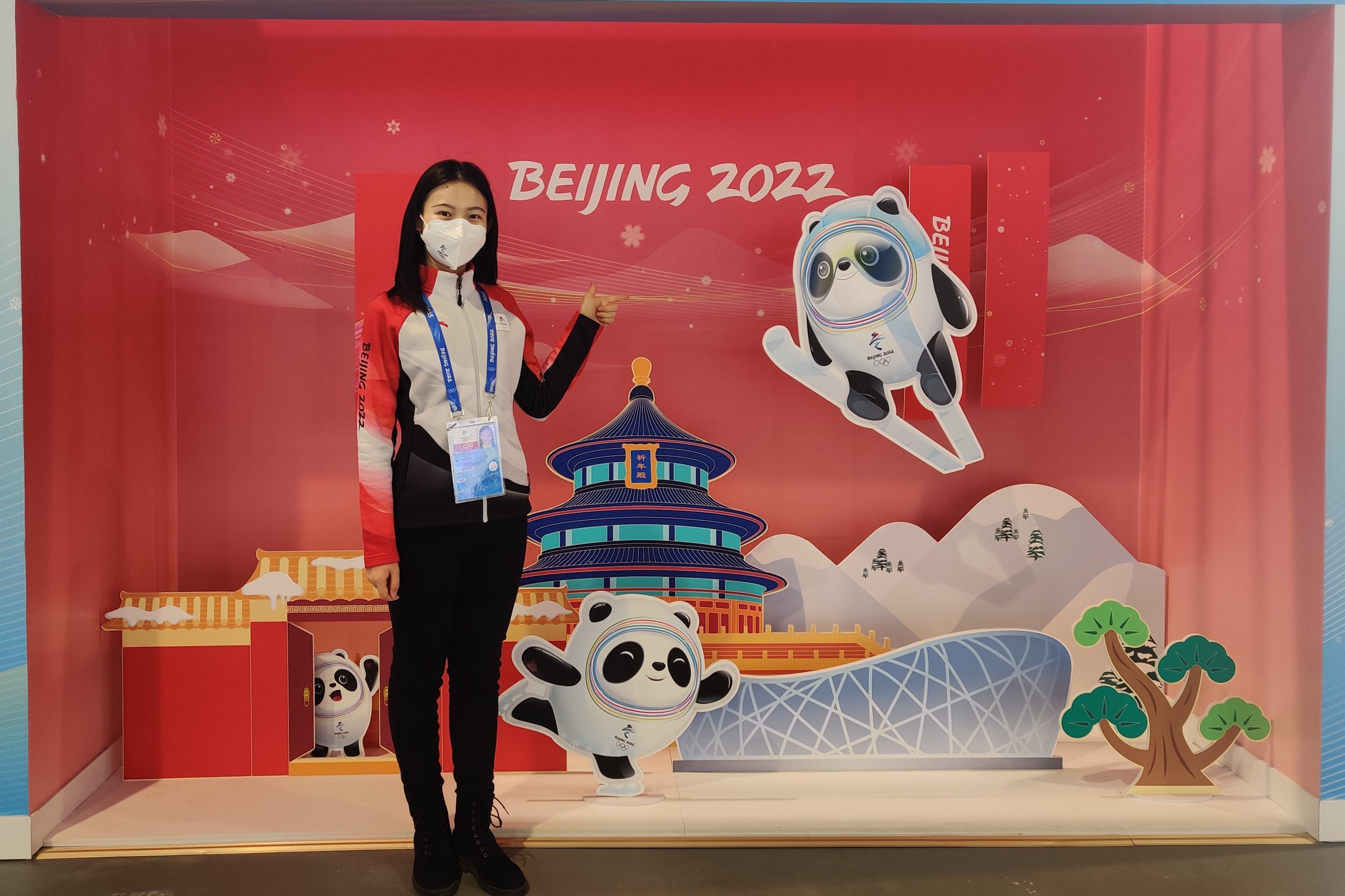 在认真完成教学任务的同时,董玥积极发挥专业优势服务社会。2021年9月至2022年4月,董玥有幸作为短期帮助人员服务于北京冬奥会和冬残奥会主媒体中心运行团队,担任口译员。