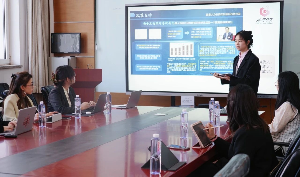 从大一初入北工商的科研小白,到“竞赛达人”,王雨倩的成长之路,充满大胆试错的勇气。 在挑战杯路演前夜,她与团队通宵调试“气味盒子”,(一项实验)却意外混合出令人啼笑皆非的“螺蛳粉味香水”。这个“意外”恰恰成为她科研路上的注脚。以孙宝国院士为灯塔,她将实验室化作探索风味的战场,用GC-MS技术解码山西陈醋千年工艺中的“绵酸酯香”,让古籍记载的智慧与现代科学共振。她坦言:“科研不是推翻传统,而是用数据翻译文明的密码。曾以为只是研究食品加工,现在才意识到,我们是‘风味设计师+健康守护者’。就像我们研发的智能香薰系统,既能提升生活品质,又能辅助情绪治疗。”