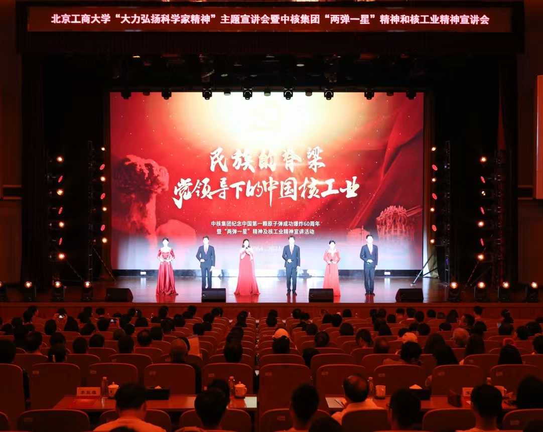 9月11日,恰逢教师节之际,北京工商大学“大力弘扬科学家精神”主题宣讲会暨中核集团“两弹一星”和核工业精神宣讲会在良乡主校区举行。宣讲采取“线上直播+线下观看”方式进行。宣讲会由人事处(党委教师工作部)(教师发展中心)、学生处(党委学生工作部)与中核集团联合举办,中核集团新时代核工业精神宣讲团成员和我校学生共同主持。学校党委书记黄先开出席并致辞,党委副书记宋晓欣、中国核工业科技馆党支部书记李枭雄、中国核工业科技馆馆长彭立新出席,学校党委常委、宣传部部长倪国华,学校办公室主任兼保密办公室主任王晓华,党委教师工作部部长、人事处处长高丽华,学生处处长、党委学生工作部部长郑光及各职能部门、学院领导观看宣讲。各基层党委、党总支800余师生现场观看,近3000人次线上观看。