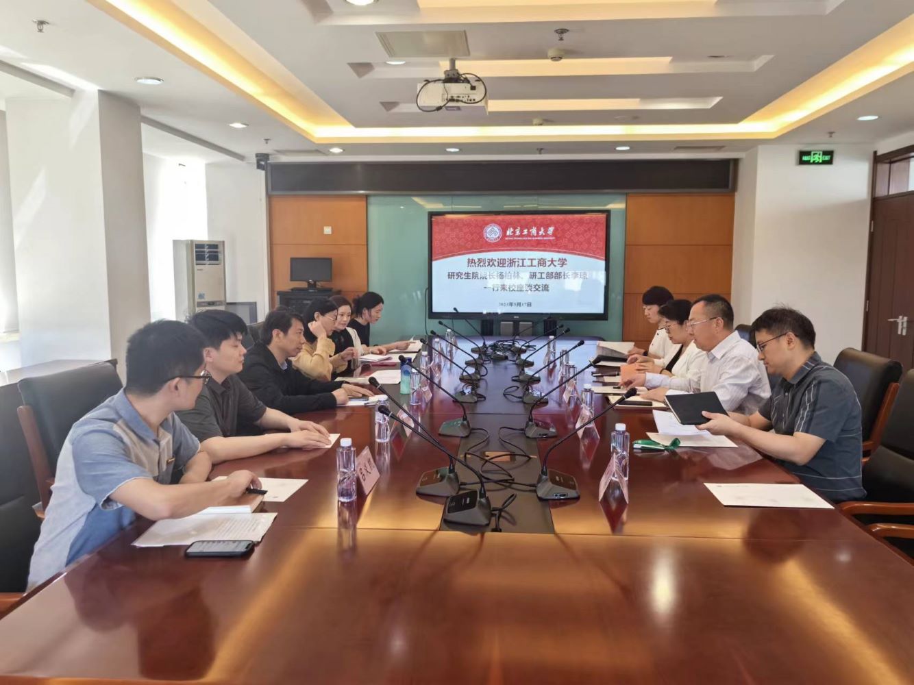 杨柏林对我校的热情接待表示感谢,介绍了浙江工商大学的历史沿革、学科专业现状、博士点建设等情况,希望借助北京工商大学的学科优势,在ESI学科建设、交叉学科建设、学部制改革等方面得到更多的指导和支持,开展深入的合作,实现优势互补、共建共赢。