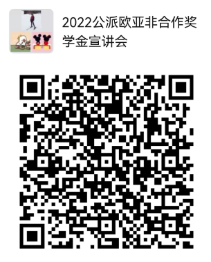 2. 请于2021年12月3日(周五)11:00前扫描二维码进入校内微信群“2022公派欧亚非合作奖学金宣讲会”,学校国际处将提前通过校内群发布指定场次的会议信息。
