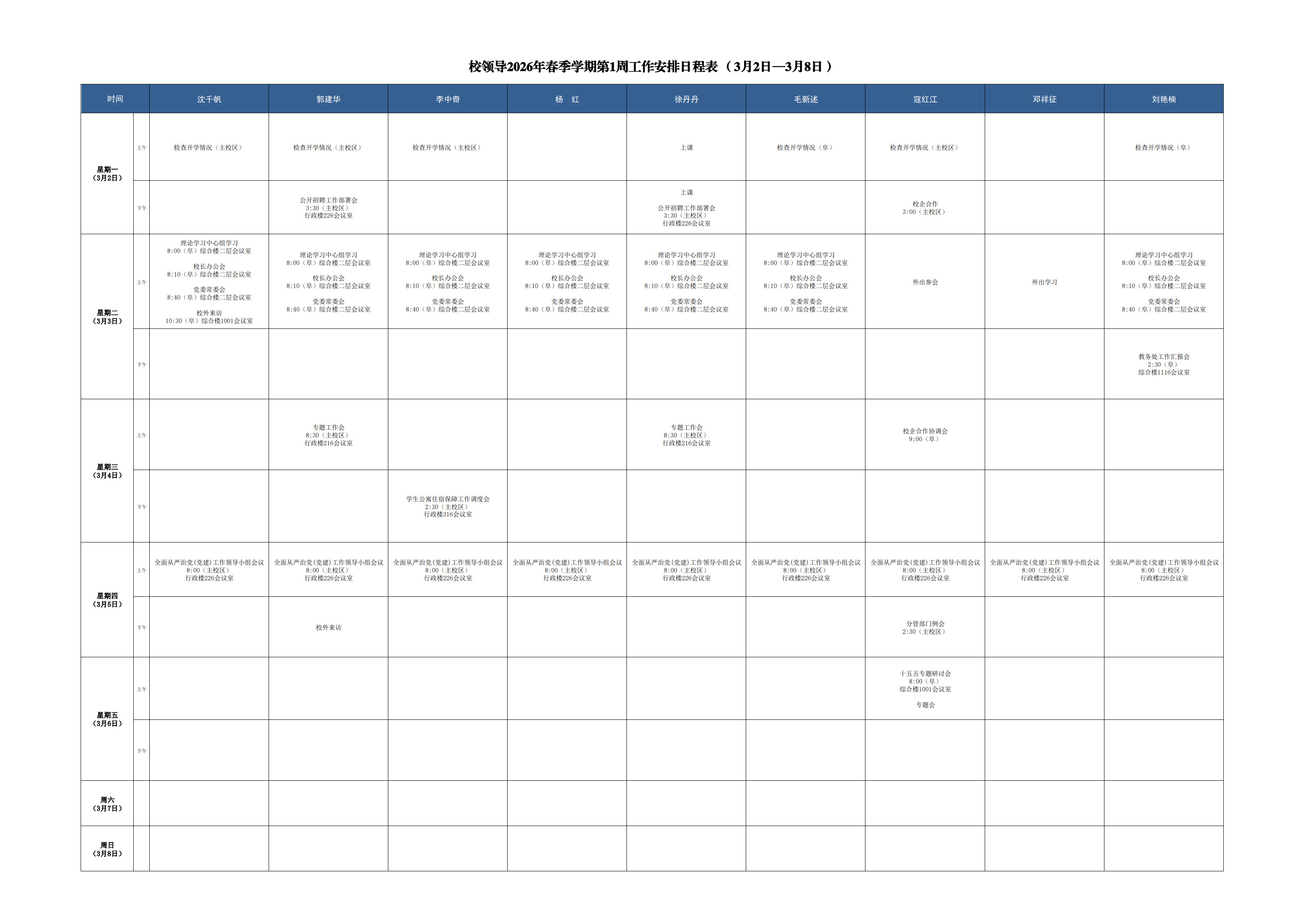 学校值班安排