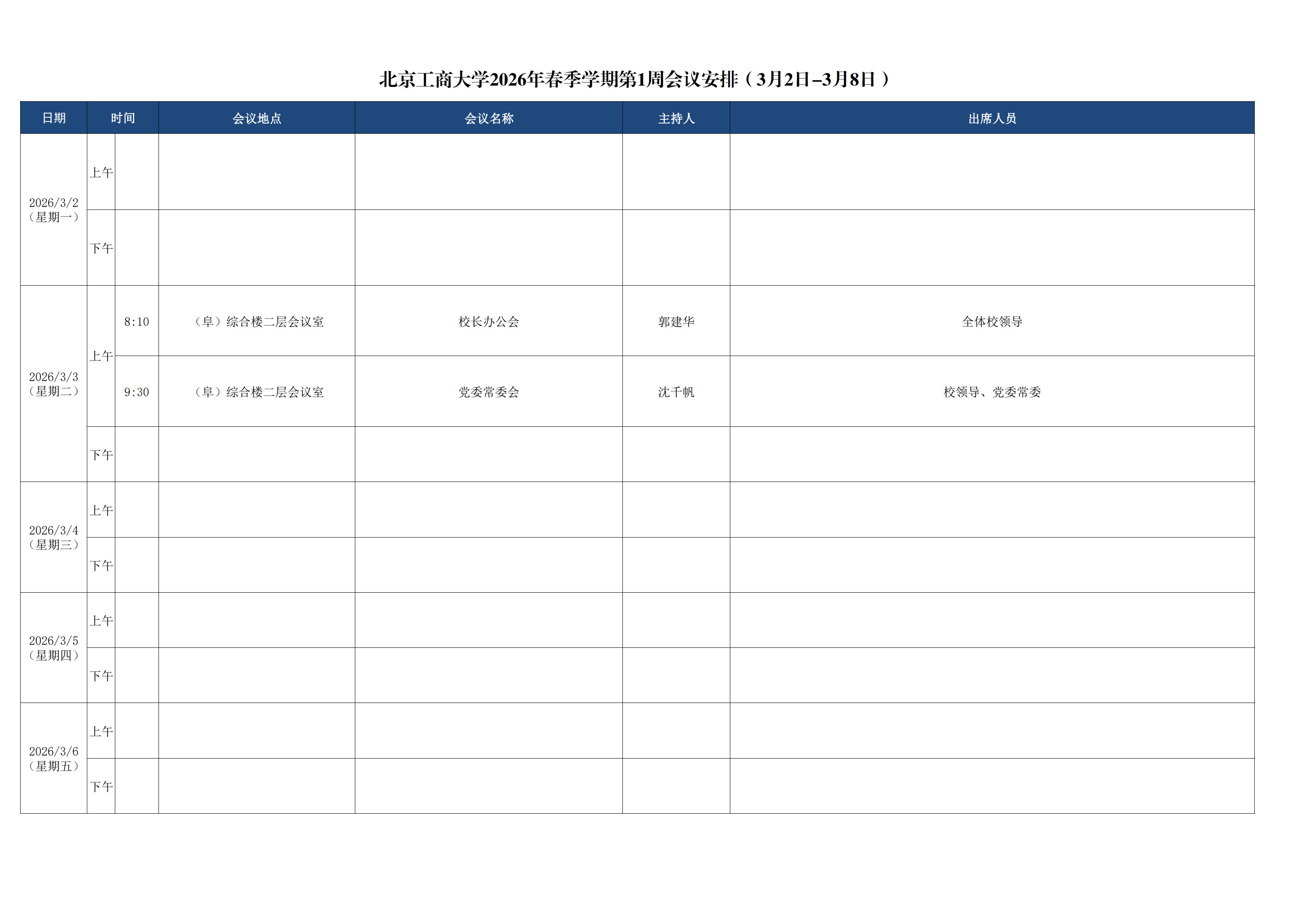 第1周会议安排