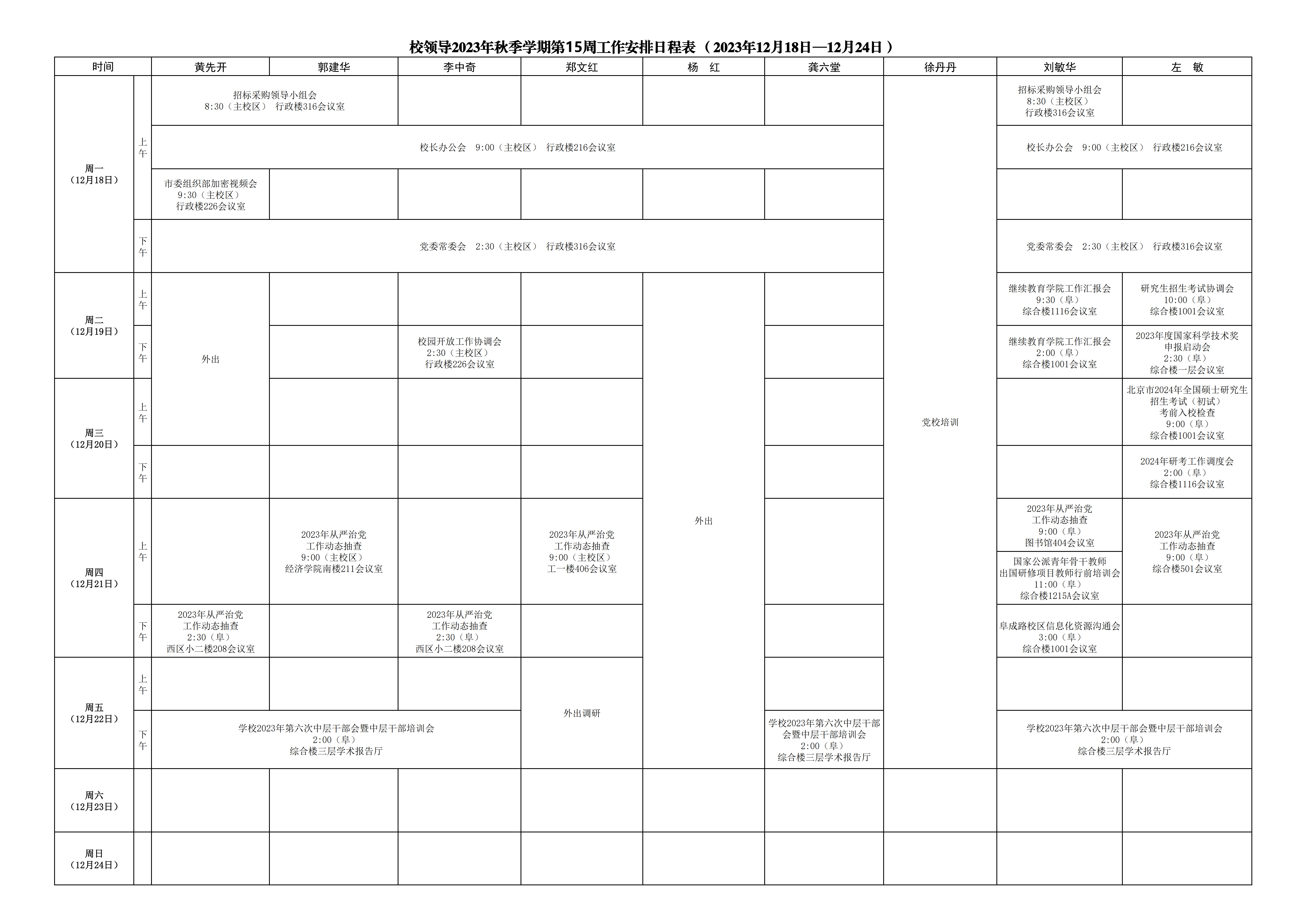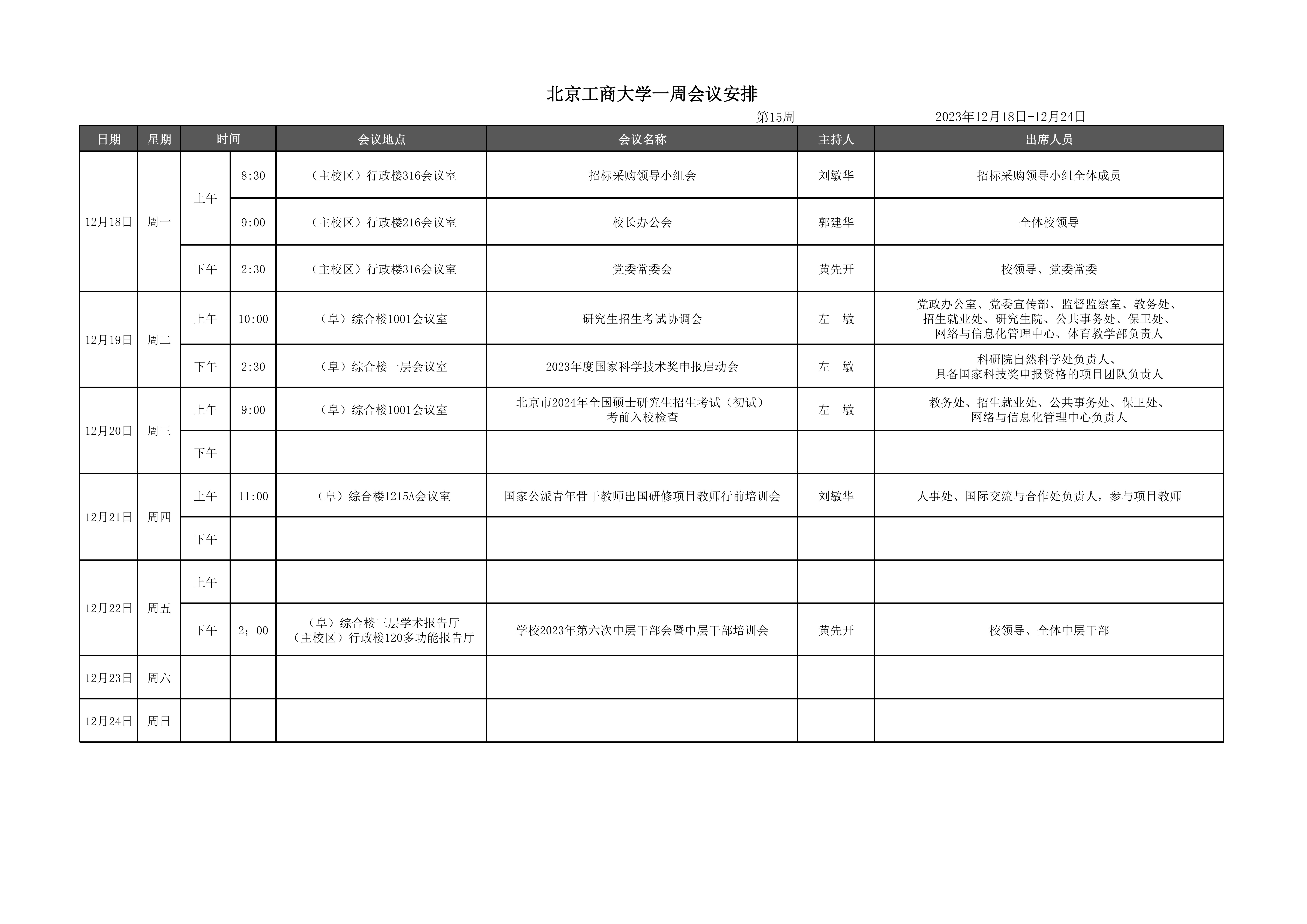 第15周会议安排
