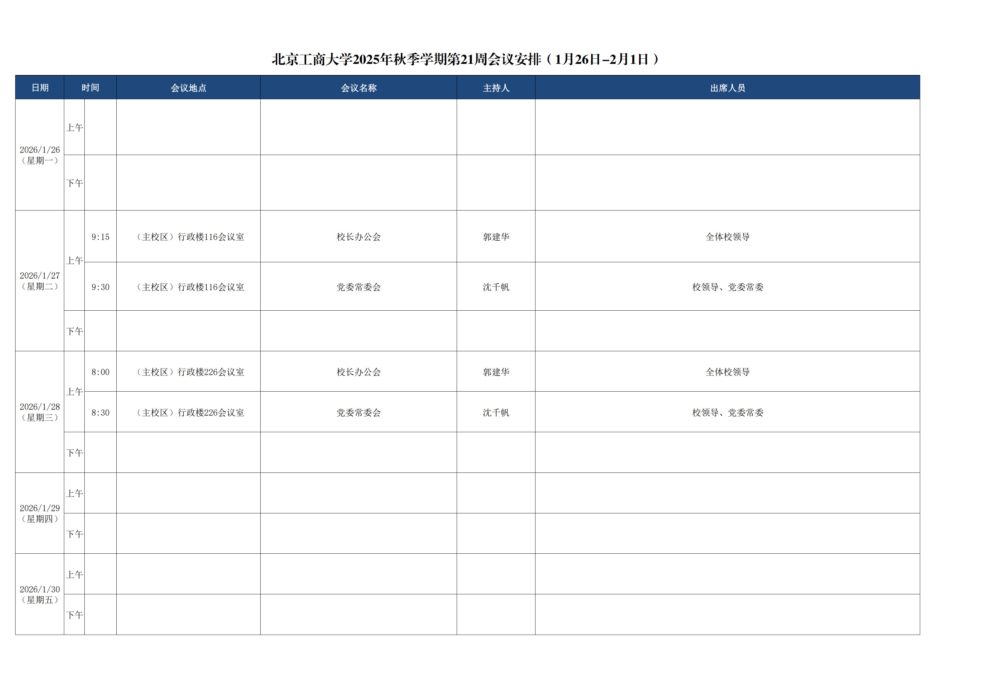 第21周会议安排