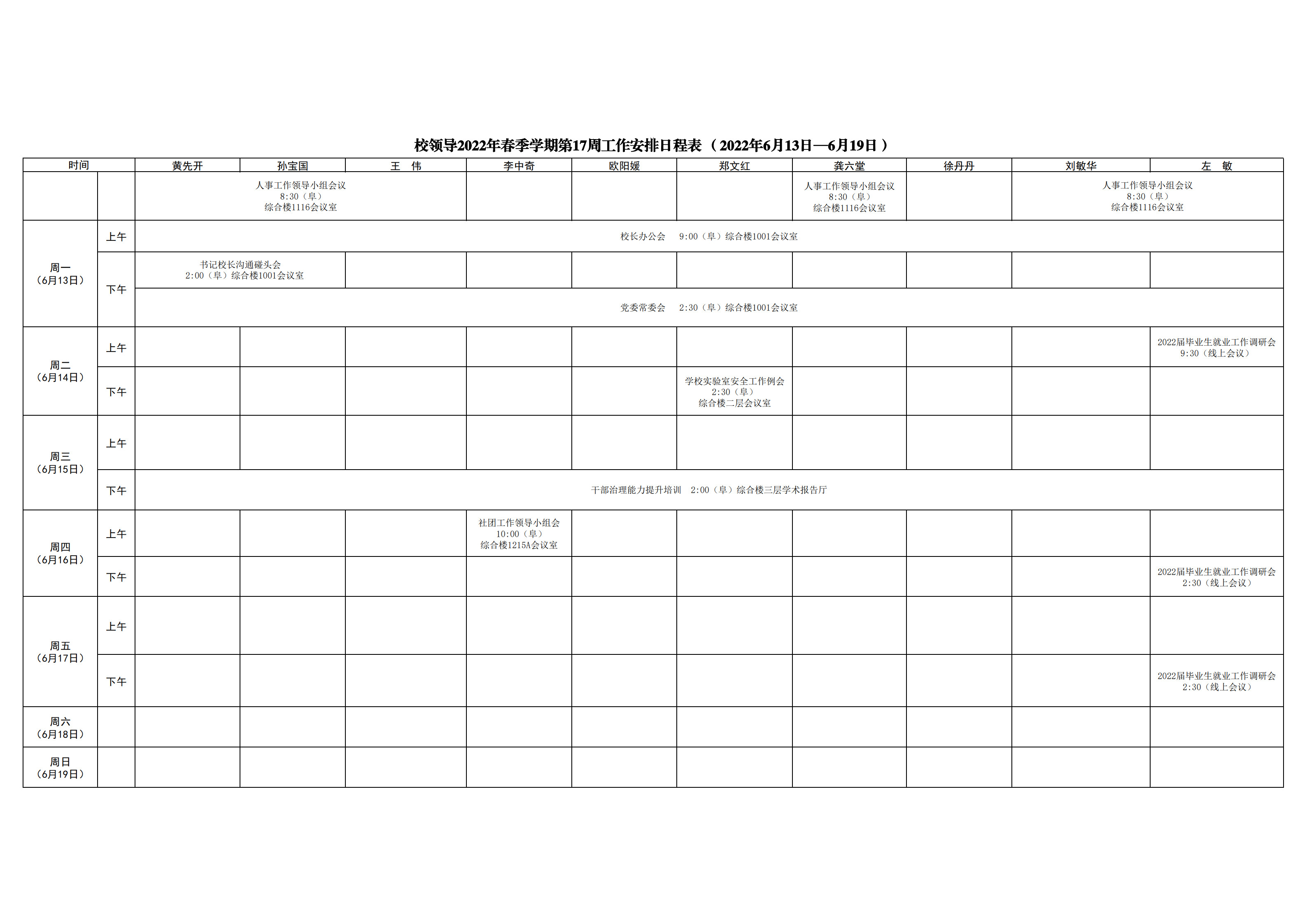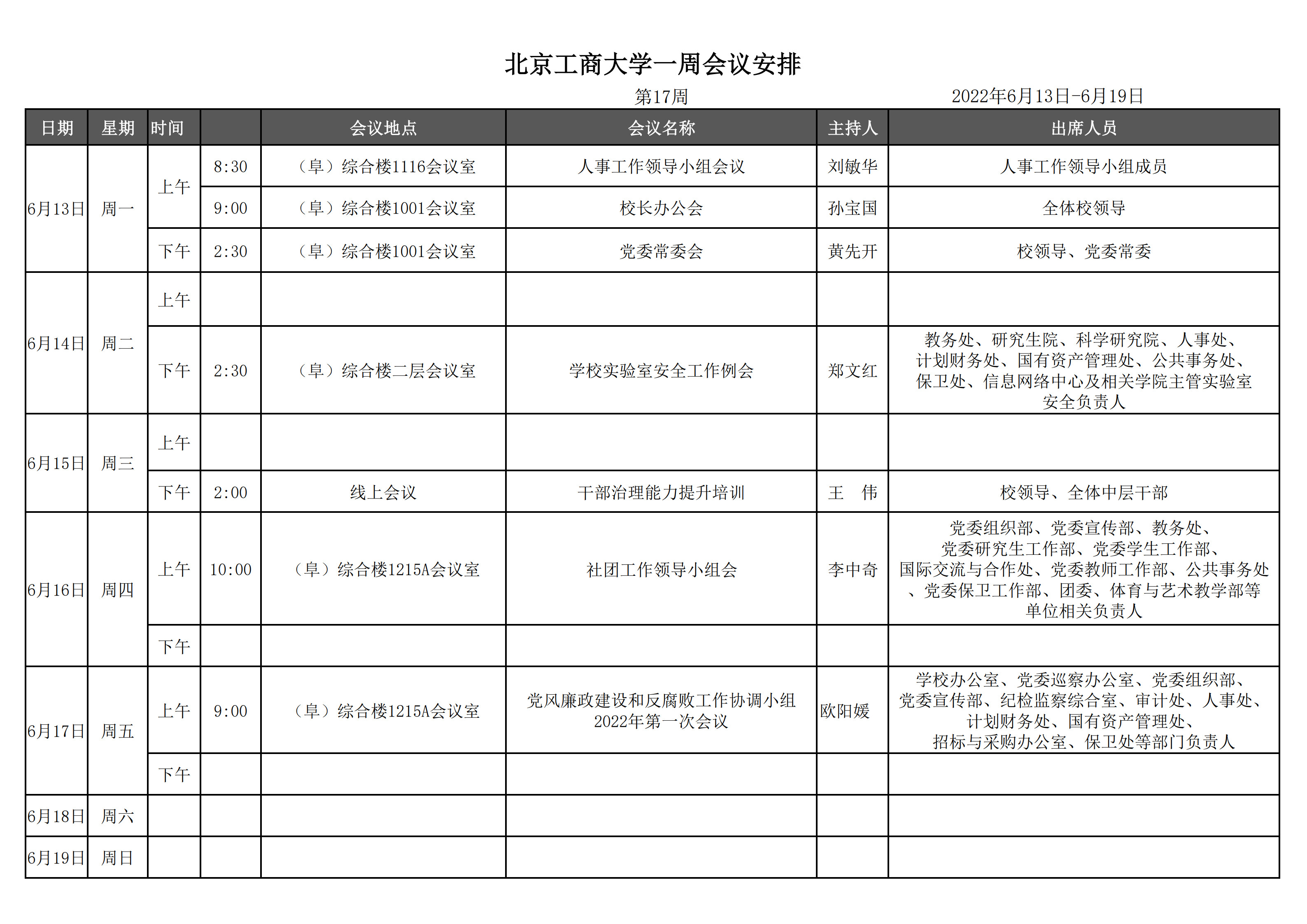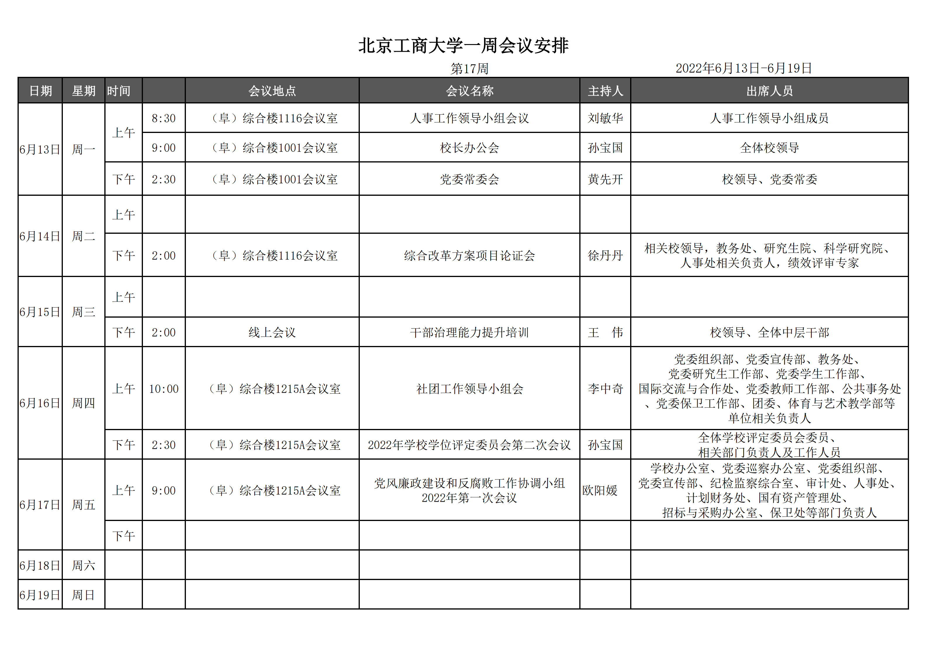 第17周会议安排