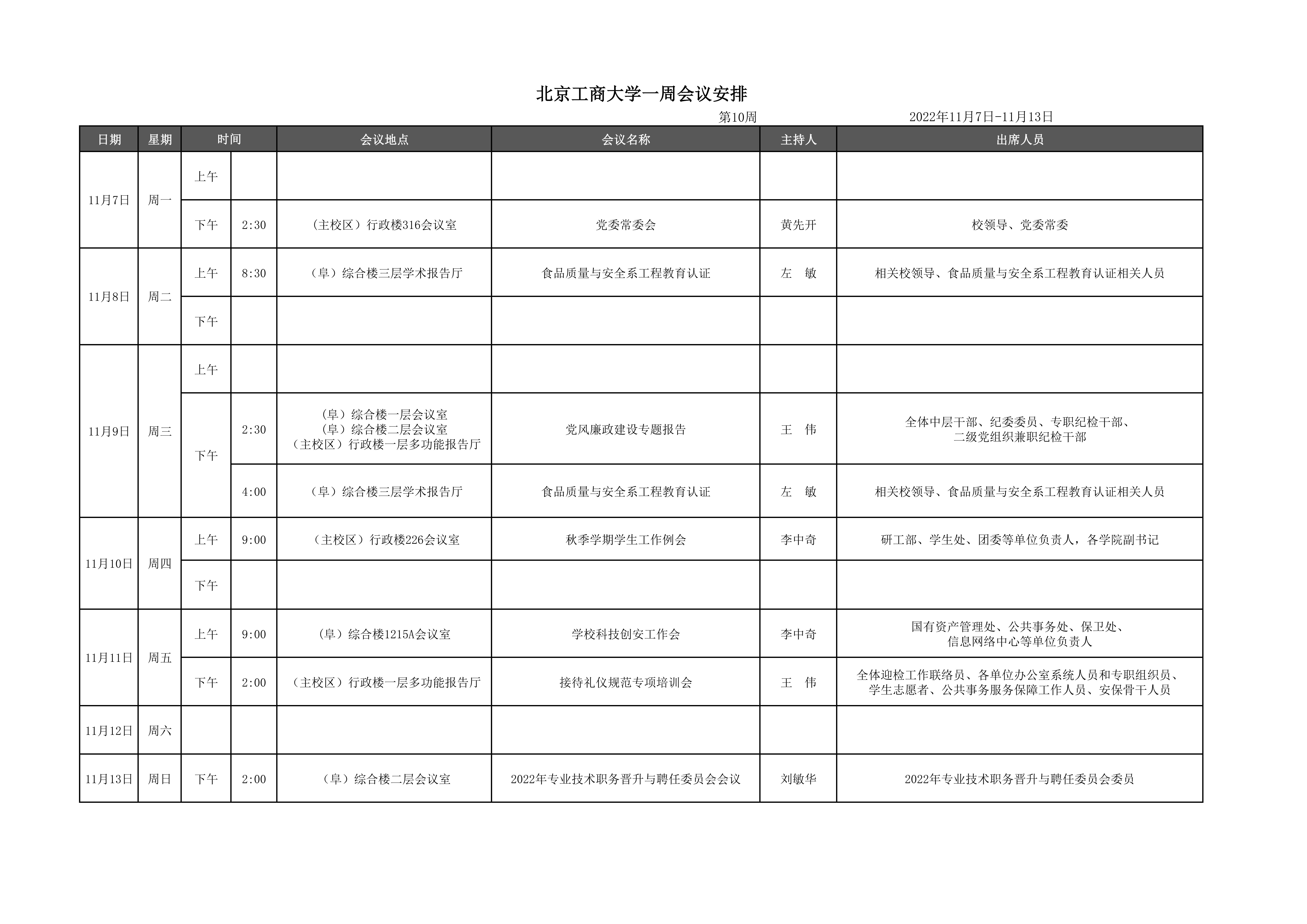 第10周会议安排