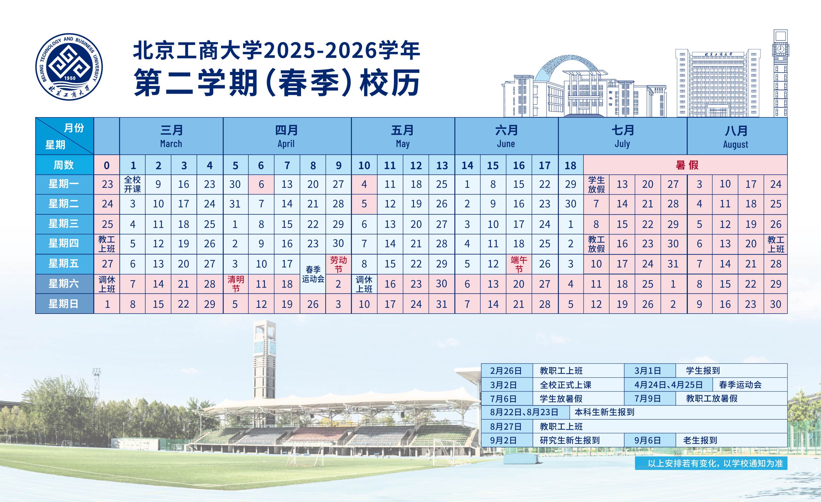 2025-2026学年第二学期(春季)校历