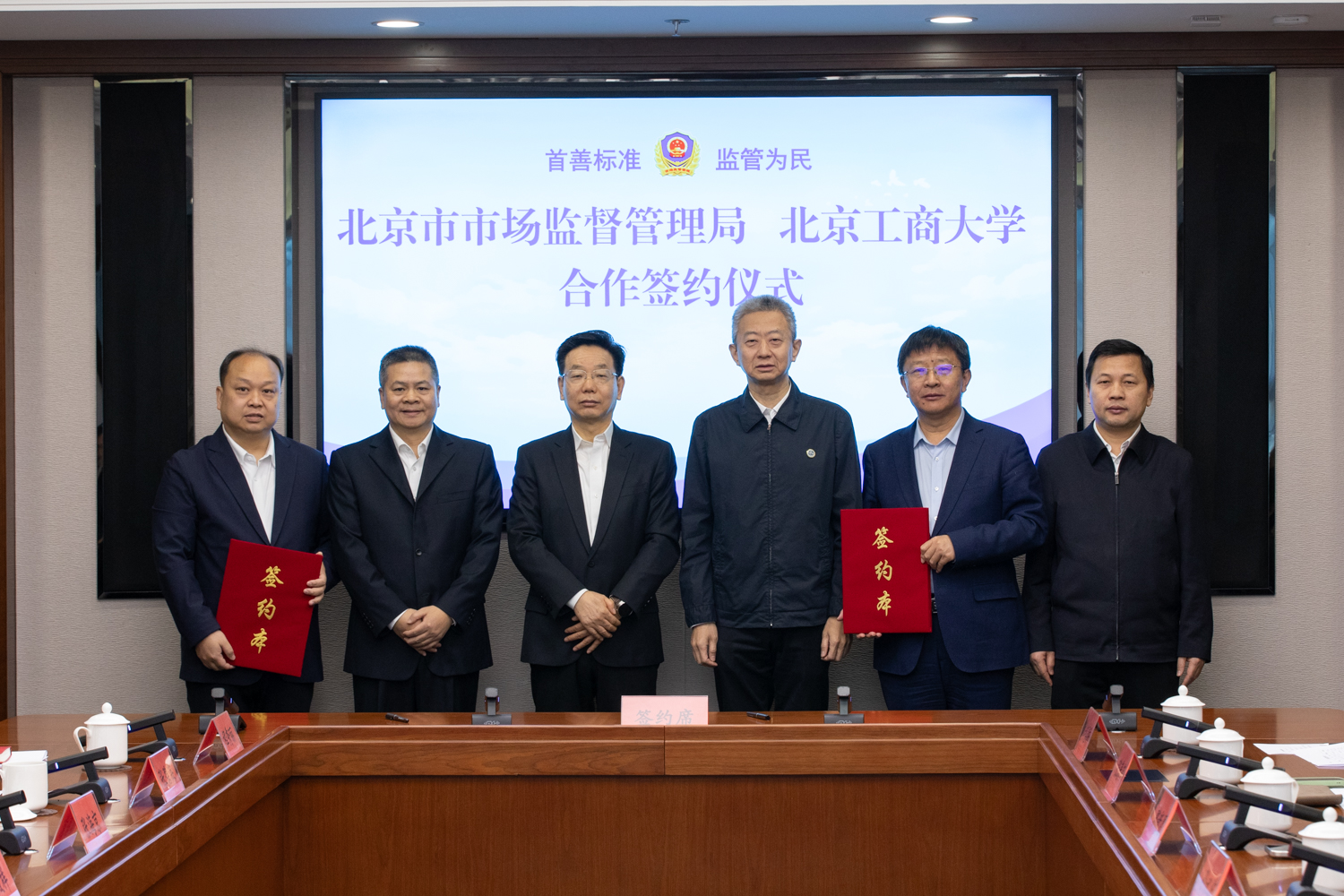 北京市市场监督管理局相关处室负责人、北京工商大学相关职能部门和学院负责人参加签约仪式。