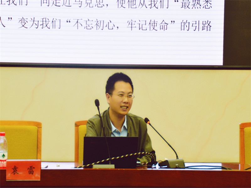 马克思有句话:“理论只要说服人,就能掌握群众;而理论只要彻底,就能说服人。”袁雷深以为然,并在授课过程中加以运用。“纯粹的理论讲述对于本科生来说总会显得枯燥”,袁雷为不同学院和学科背景的学生有针对性地安排授课内容。2017年秋季学期,袁雷首次接触新闻专业的本科生。“新闻专业的学生较其他专业的学生知识面更广,思维更发散,也更有理想和情怀。所以在授课的过程中,我会加上马克思主义新闻观的内容,重点讲授马克思关于新闻必须扎根于人民、反映社会现实,新闻从业者必须有自己的坚守等内容。”有学生在教学评价中留言:“老师的课又红又专,还很有情怀,帮助我们树立了‘铁肩担道义,妙手著文章’的信念和正确的世界观、人生观、价值观。”