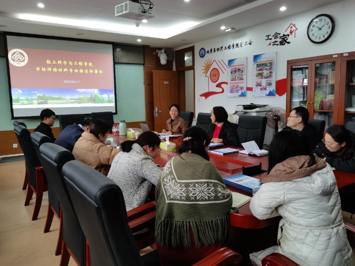 3月27日,轻工科学与工程学院召开本科教育教学审核评估学院材料专班推进部署会。学院材料专班成员、各系材料专班负责人、本科教学秘书参会。会议由学院副院长靳玉娟主持。会上,学院向各系发放了教务处印发的评估指导手册。