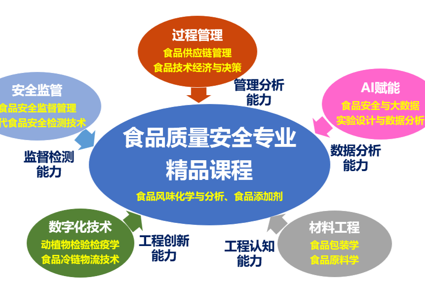 2) 开设食品技术经济与决策、食品供应链管理、食品包装学等专业特色课,结合文学与艺术审美类通识课程程,建全“多科交叉”的课程培养体系。