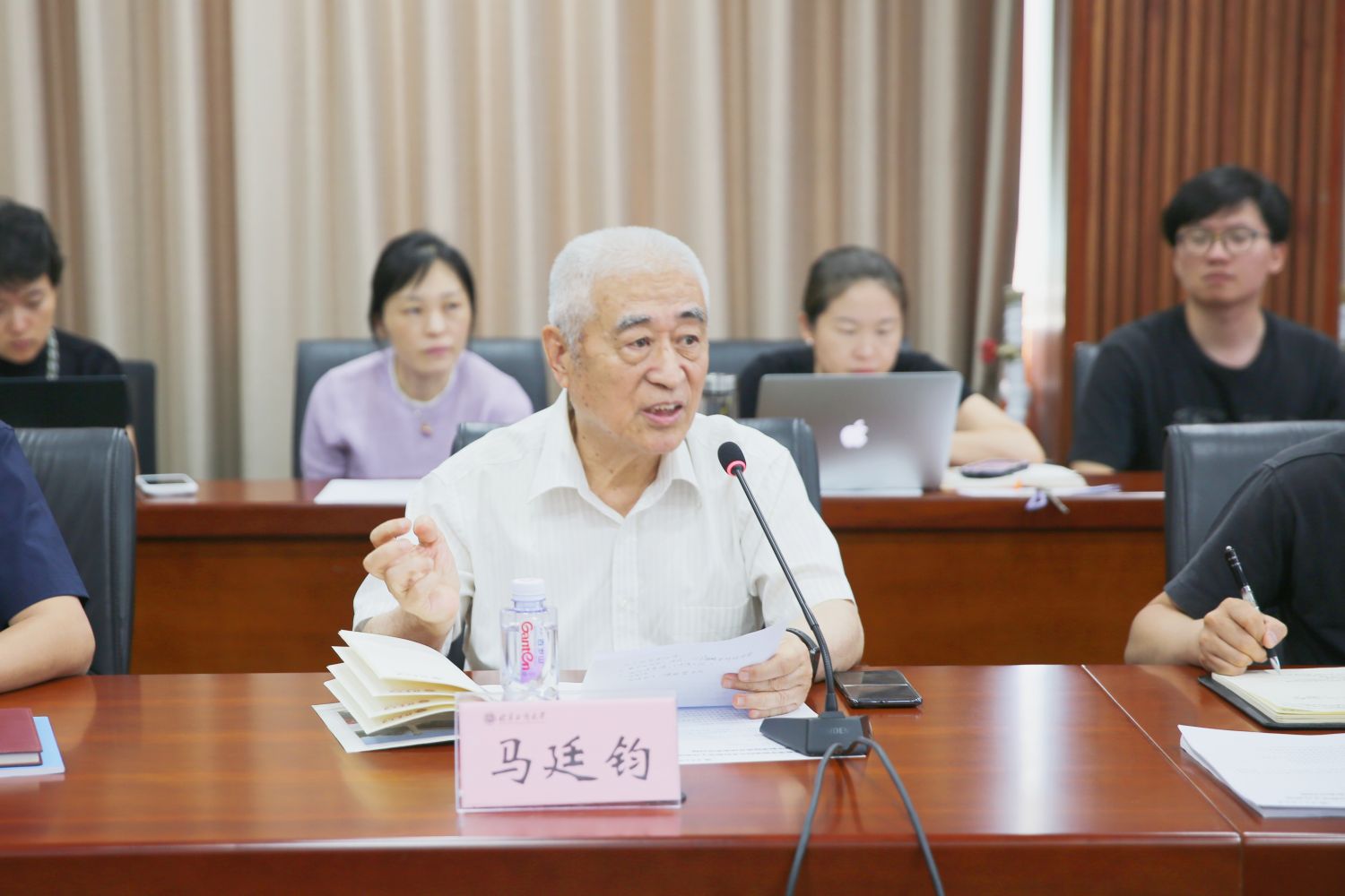 在期中教学检查工作总结阶段,各教学单位就近期教学运行、师生座谈、听课评课,以及围绕教学质量提升月开展的多项活动进行了详细汇报,并就期中教学检查过程中发现的问题提出了针对性的整改方案。本科教学督导专家组组长马廷钧就期中教学检查总体情况进行了肯定并指出目前存的一些问题,他建议各学院要重视提高青年教师的教学技能提升,可以通过改善课件制作、观摩教学等方式提高教学质量。