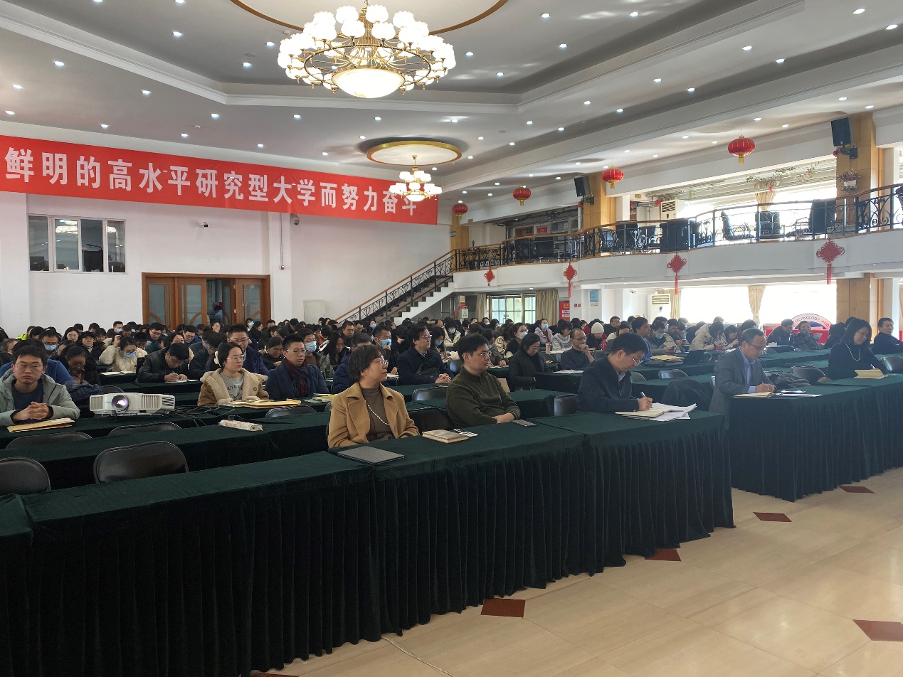 学院副院长靳玉娟从三个方面解读了学院的实施方案。一是明确组织机构及职责分工,学院高度重视本科审核评估工作,成立本科审核评估工作小组,领导、组织学院审核评估总体工作。二是介绍了审核评估各阶段的工作任务及安排。三是对学院本科审核评估工作提出了工作要求。希望大家高度重视审核评估工作,全院各系互相支持、全员参与,以评促建、以评促改,自查问题后切实整改,全面提升本科教学水平和人才培养能力,有效推动学院快速提质发展。