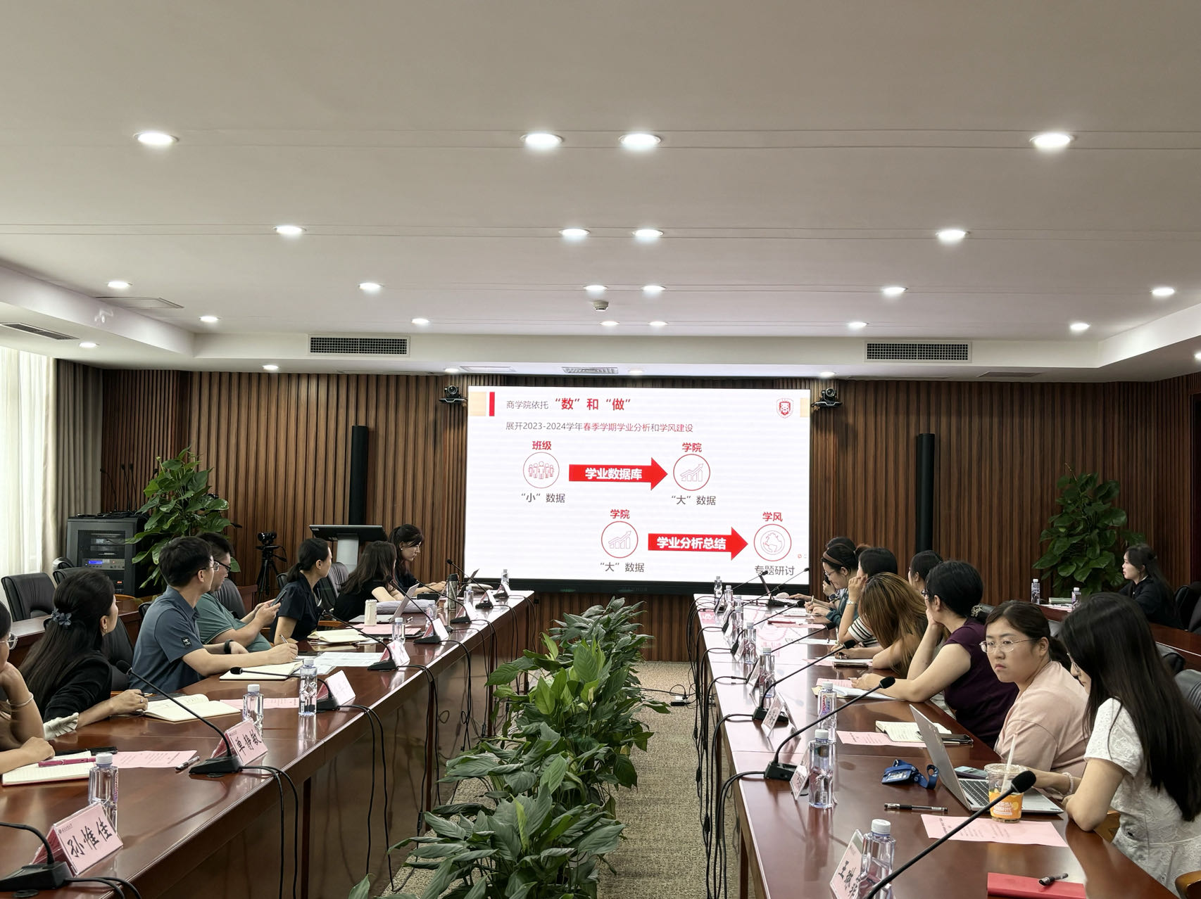 随后,各学院分别汇报了学风建设工作。经济学院以“落实课堂教育、重视学业扶育、聚焦专业提育、瞄准课后优育和贯彻就业帮育”入手,打造学风建设“五育互联”优培模式;商学院坚持以创促学,成立新商科青创中心,实施共“商”青创质量工程,提高商科人才数字化能力;食品与健康学院实施“筑基工程”专项行动,多措并举做好学困生学业帮扶;轻工科学与工程学院创新开设“自律课堂”,激发学生自主学习意识,营造比学赶超的良好氛围;数学与统计学院立足专业特色,打造“18634”学风建设工作体系,全方位助力学生学业成长;计算机与人工智能学院针对学生学业痛难点,注重班主任作用发挥,鼓励班主任深入班级,构建师生互动、教学相长的良好互动;法学院以“盈寸致远”读书会撬动学生学习内生动力,全面提升专业素养;语言与传播学院注重学习习惯养成,严格执行课堂考勤制度,端正学风班风;设计与艺术学院实施朋辈互助、以赛促学、严查考勤三大举措,扎实推进学风建设工作。