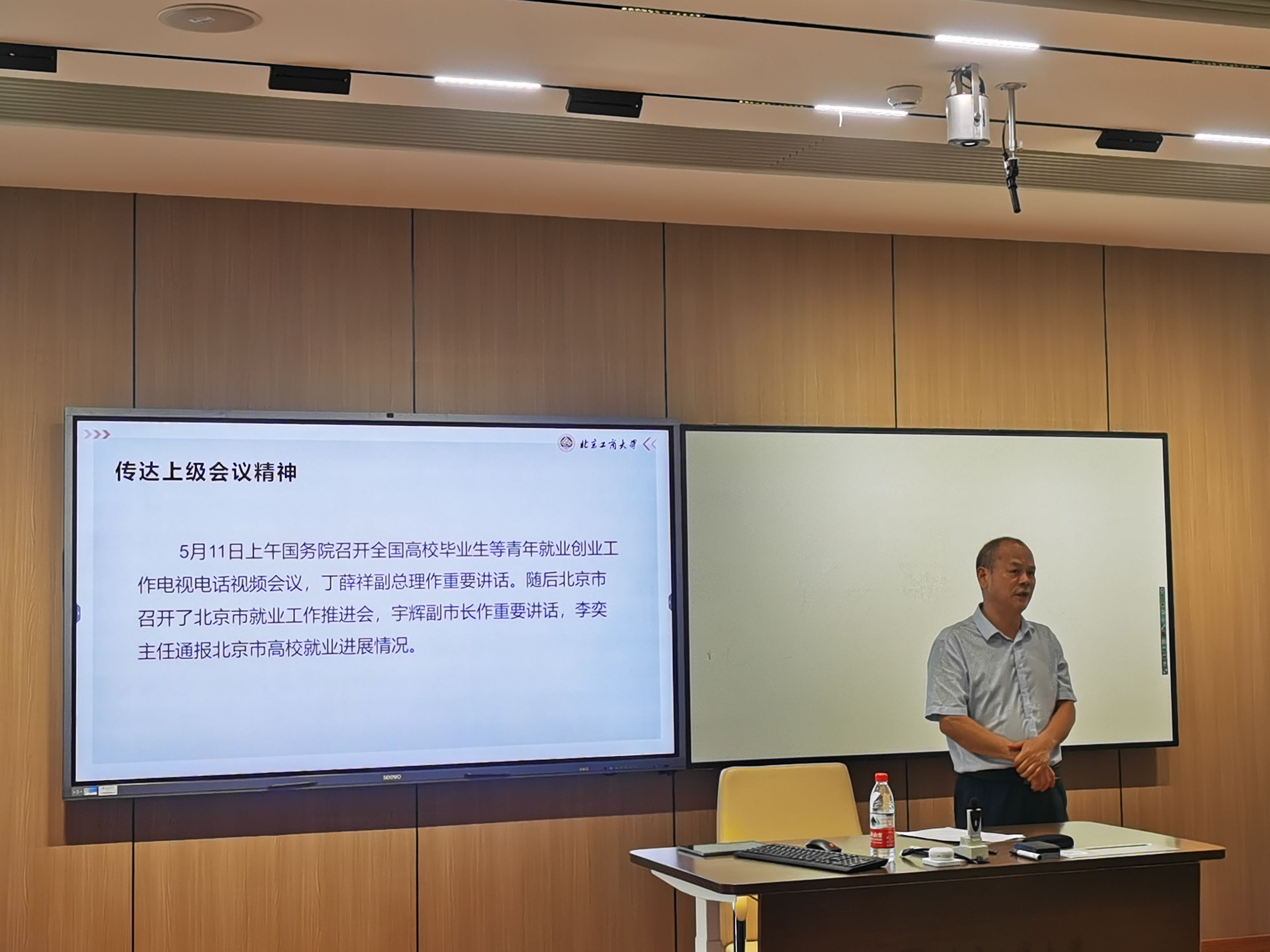 杨林传达了全国高校毕业生等青年就业创业工作电视电话视频会及北京市2023届毕业生就业工作推进会会议精神,他对比了学校现阶段各项就业数据,对传媒与设计学院下一步就业重点工作作出指导。