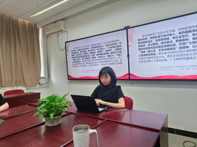 5月26日,大数据管理与应用系教师党支部围绕主题教育召开专题党课。党支部书记徐娜同志带领全体教师学习了《习近平著作选读》中的重要思想,并表示,学思想最根本的是凝心铸魂,老师们要在坚定理想信念上走在前、作表率。只有把习近平新时代中国特色社会主义思想学懂弄通做实,才能不断开创高质量发展新局面。党支部纪律委员赵林同志领学了《习近平总书记关于师德师风的重要论述摘编》。赵林同志强调,新时代教师队伍建设,加强师德师风是关键,教师们一定要深刻认识自己肩负的职责和使命,锤炼教育报国之志,坚守为党育人、为国育才初心,自觉坚守精神家园、坚守人格底线,率先垂范、以身作则,争做大先生,做学生为学、为事、为人的示范。